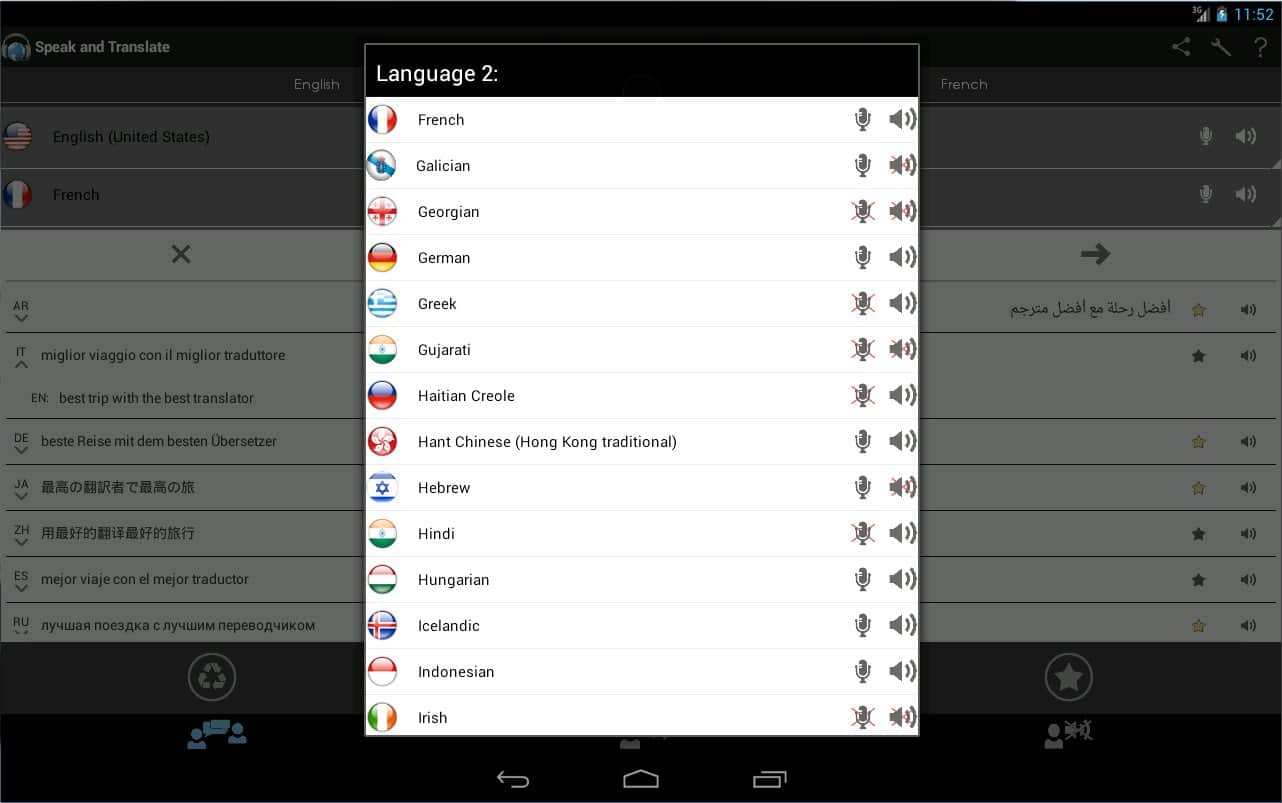 Konuş ve Çevir - Android için iyi bir uygulama, cihazınızı senkronize çevirmen haline getirir. 69 dilde otomatik ses tanıma ile sesli çeviri özelliği uygulanmıştır.