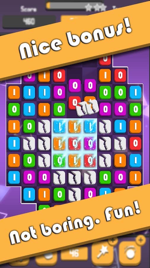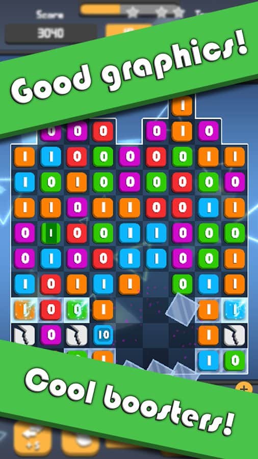 0101 - 3 Eşleştir Bulmaca – Android için eğlenceli bir 3'lü eşleştirme oyunu, burada yapay zekaya kaynak kodunu geri kazandırmasına yardımcı olacaksınız. Yapay zekamızın baytları karıştı ve hareket etti, onları geri kazandırmanız gerekiyor. Bunun için aynı renkteki baytları sıralayıp oyundan kaldırmalısınız. Mümkün olan en hızlı şekilde sıralamalar yapın ve bunun için bonuslar ve güçlendirmeler kullanın. Mantıksal ve zihinsel yeteneklerinizi devreye sokun ve ihtiyaç duyduğunuz kombinasyonları oluşturun. Oyunda 100'den fazla seviye, birkaç oyun modu ve sayısız harika güçlendirme bulunmaktadır.
