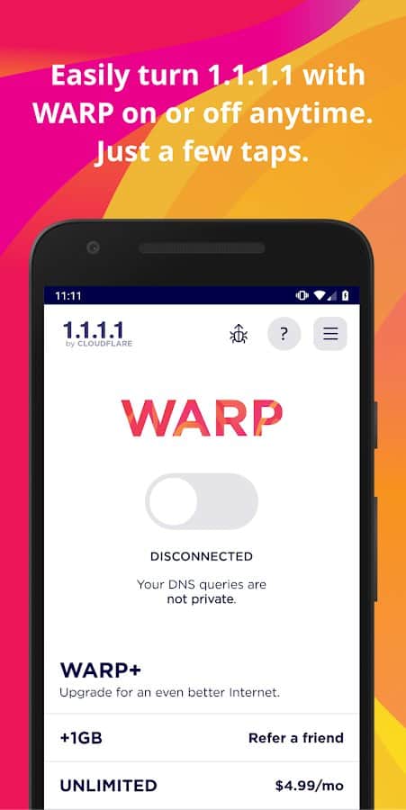 • WARP, telefon ile internet arasındaki bağlantıyı modern ve optimize edilmiş bir protokolle değiştirir. WARP'ı hemen ücretsiz olarak etkinleştirebilirsiniz!