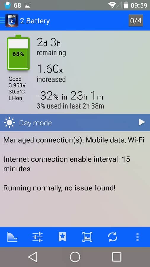 Uygulama, pilin hızlı bir şekilde bitmesi problemiyle karşılaşan herkes için ilginç olacaktır. 2Battery ile arka planda çalışan uygulamaların çalışmasını, kablosuz bağlantı kullanımını esnek bir şekilde ayarlayabilir, gece moduna geçebilir, ekran parlaklığını otomatik olarak ayarlayabilir ve ihtiyaç duyulursa uygulamalar için beyaz listeler oluşturabilirsiniz (2Battery'nin çalışması bu uygulamalara uygulanmayacaktır). Ayrıca, uygulama, durum çubuğundaki simgenin varlığı ve değiştirilmesi, widget'lar, sesli bildirimler ve daha fazlası gibi birçok ayar seçeneği ile dikkat çekmektedir. Ayarların bolluğuna rağmen, programla başa çıkmak zor değildir, çünkü içindeki her şey düzenli bir şekilde sistematize edilmiştir.