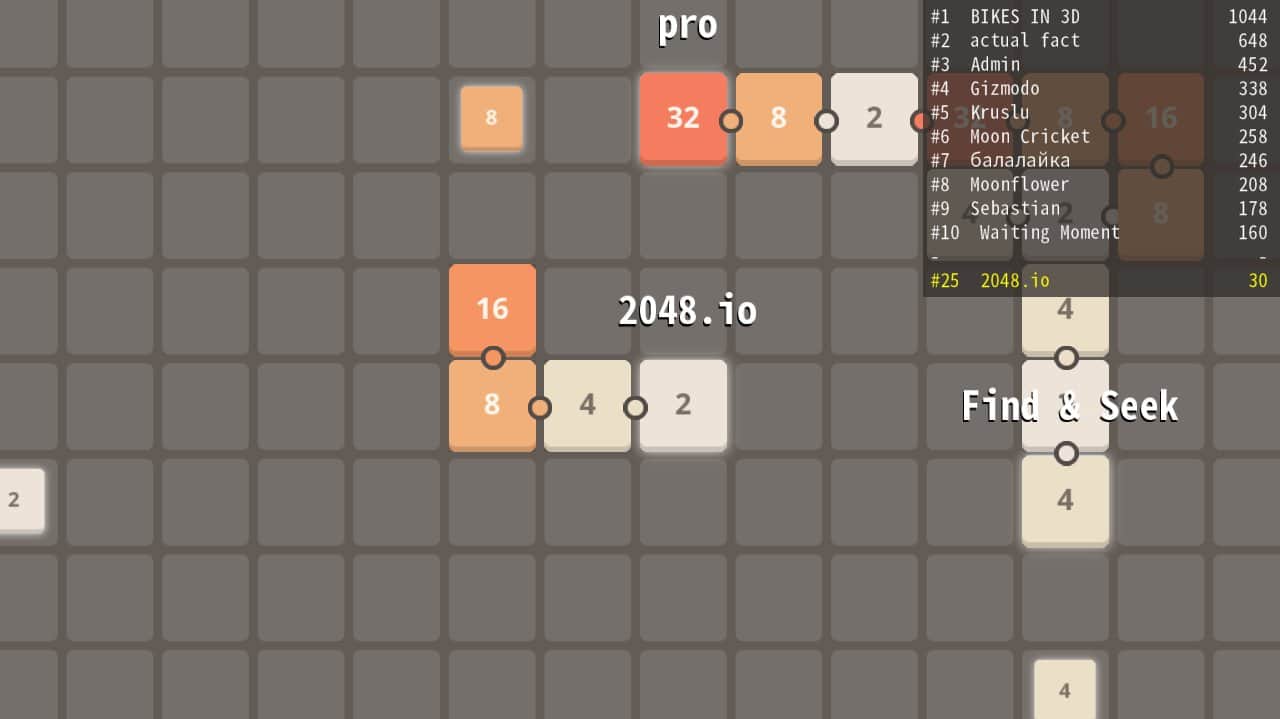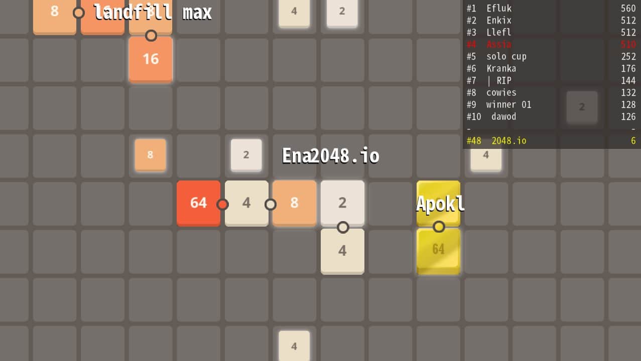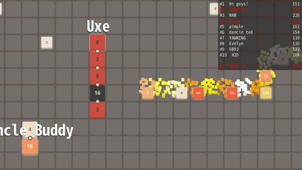 2048.io - karelerden oluşan yılanı yönlendirin ve oyun alanında hareket edin. Bu Android oyununda, amacınız oyun alanında seyahat etmek ve sizinle aynı sayıya sahip kareleri toplamak, ayrıca sayısız rakipten kaçınmaktır. Sizinle aynı sayıya sahip olan kareleri arayın, eğer başka bir sayı varsa onlar kuyruğunuzu oluşturur. Dünyanın dört bir yanındaki en güçlü oyunculara meydan okuyun ve onlarla geniş arenada yarışın. Minimalist grafikleri olan bu oyunu oynayın ve boş zamanınızı eğlenceli bir şekilde geçirin.