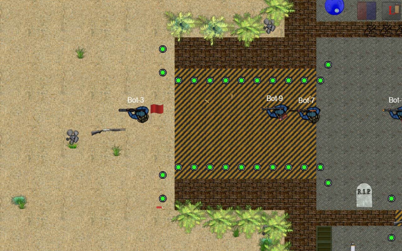 2D Strike – üstten görünümde, birçok oyuncuya karşı oynayacağınız heyecan verici bir nişancı oyunu. Roketatar, makineli tüfek, alev makinesi gibi güçlü silahları elinize alın ve rakiplerinizi takip ederek haritalarda hareket edin. Bu oyunda takım oyunu, üs savunması, bayrak kapma, böcek saldırısı, zombi enfeksiyonu ve daha fazlası gibi dokuz oyun modu bulacaksınız. Kendi üssünüzü düşmandan korumak için barikatlar inşa edin ve kuleler yerleştirin. Aynı anda bu oyunda 20'ye kadar oyuncu oynayabilir veya botlara karşı oynayabilirsiniz.