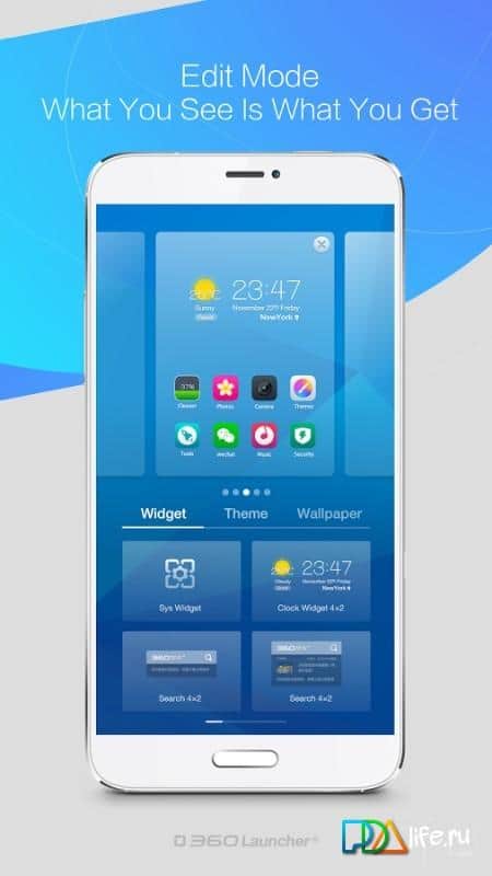 Başlatıcı, birçok yazı tipi, animasyon, tema ve duvar kağıdı içerir; ayrıca yerleşik widget'lar ve simgeler de mevcuttur.