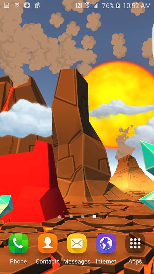 3D Çizgi Film Volkan Canlı WP - birçok kişi mobil cihazlarında sıradan, statik duvar kağıtlarından sıkılır. Eğer durum gerçekten böyleyse, o zaman kesinlikle canlı duvar kağıtlarını kurmanız gerekiyor, bu hızlı bir şekilde sizi sıkıldığınız görüntüden kurtaracaktır. Ayrıca paralaks efekti birçok kişinin hoşuna gidecektir.