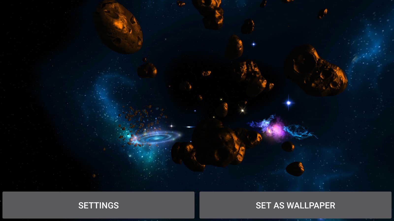 3D Galaksiler Keşfi LWP – şu anda popüler olan paralaks efekti ile harika uzay temalı canlı duvar kağıtları. Sonsuz uzay boşlukları uzun zamandır insanları büyülemiştir ve engin yıldızlı gökyüzü bilim insanlarını galaksinin sonsuz alanlarını araştırmaya teşvik etmiştir. Canlı duvar kağıtları, evrenin muhtemel bir parçasını bütün güzelliğiyle görmenizi sağlayacak. Duvar kağıtları yüksek bir kalitede hazırlanmıştır ve kesinlikle sahibini memnun edecektir.