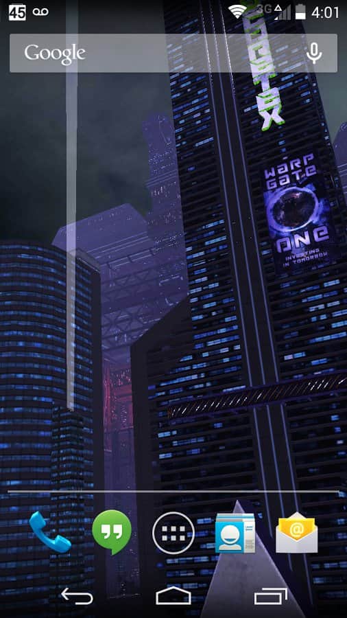 3D Canlı Duvar Kağıdı Karanlık Şehir - tam 3D olarak yapılmış harika canlı duvar kağıtları. Sizi, yüksek gökdelenlerle dolu büyük metropollerin tüm gezegeni kapladığı yakın bir geleceğe götürüyor. Şehrin tüm mimari çözümlerini görmek için telefonunuzu 360 derece döndürmeniz gerekecek. Harika bir fikir ve en az onun kadar güzel bir uygulama gerçekten kaliteli duvar kağıtları yaratmayı sağladı.