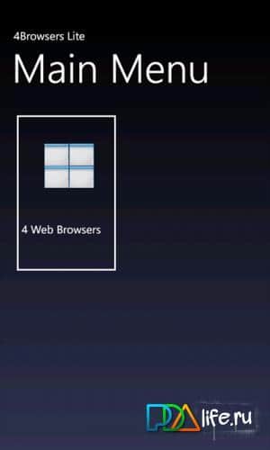 4Browsers – Windows Phone 7 için harika bir tarayıcı. İnternette çalışmak artık daha da kolay ve hızlı hale geliyor, çünkü harika bir uygulama, içinde 4 bağımsız tarayıcıyı bir araya getiriyor. Onlarla hem sırayla hem de aynı anda çalışabilirsiniz, sayfayı tam ekran moduna geçiş yapma imkanı vardır, ayrıca her bir tarayıcı için yer imleri oluşturma ve ana sayfalar belirleme imkanı da mevcuttur.