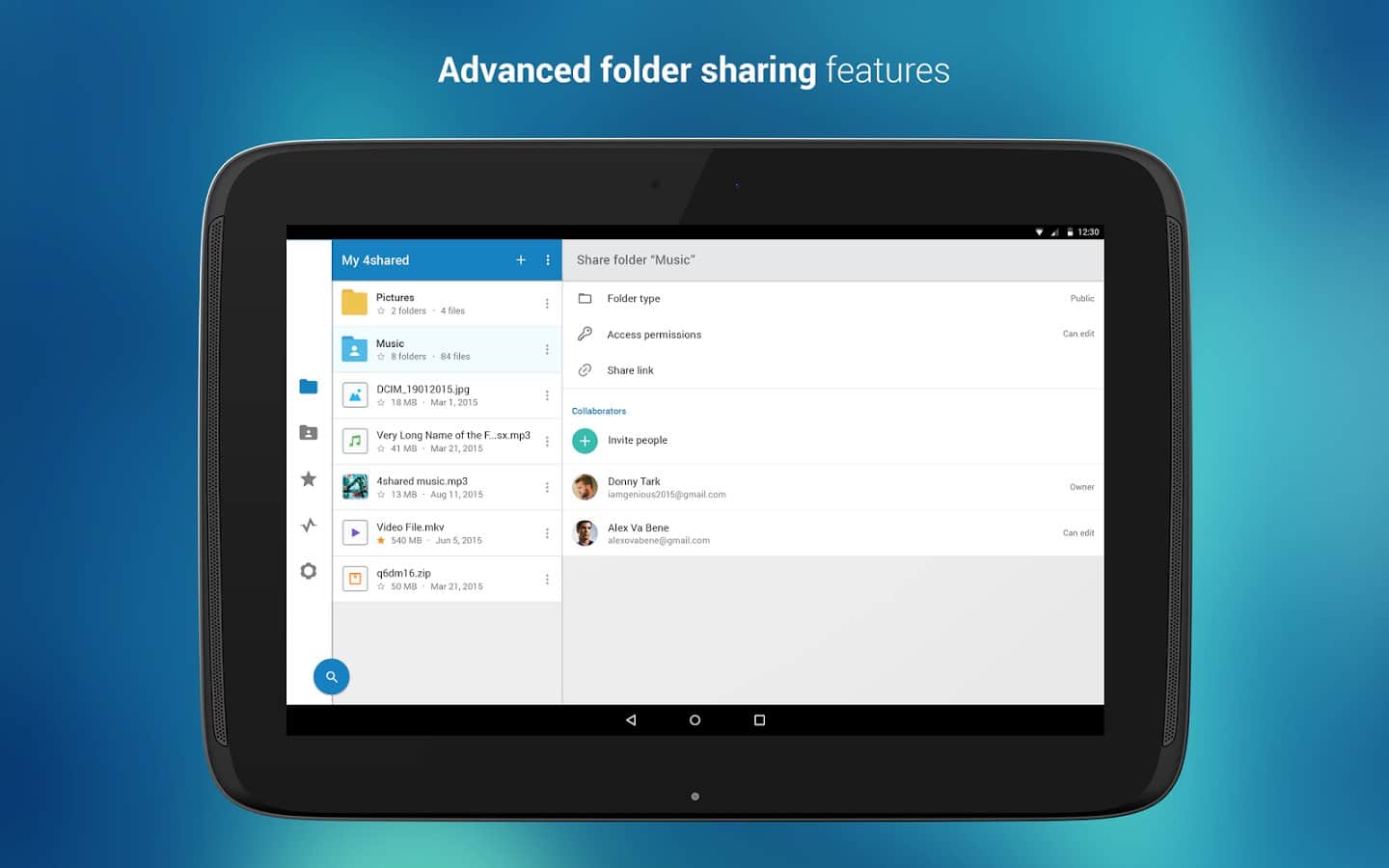 4shared - Günümüzde dosya paylaşımı oldukça yaygın bir hale geldi, ancak her zaman bir şeyi doğrudan göndermek mümkün olmuyor, işte bu noktada bu bulut depolama sistemi devreye giriyor. Orada sadece dosyalarınızı saklamakla kalmayacak, aynı zamanda arkadaşlarınızla paylaşabileceksiniz. Bu sadece bir depolama alanı değil, her türlü şeyi saklayabileceğiniz gerçek bir güvenli veritabanıdır. İçeri girecek olan sadece siz olacaksınız, akıllı telefonunuzla giriş yapsanız bile, özel bir şifre girmeniz gerekecek, bu yüzden dosyalarınızın güvenliği konusunda endişelenmenize gerek yok.