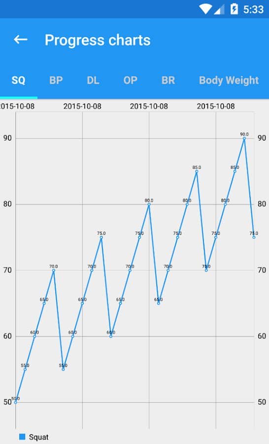 5x5 Workout log