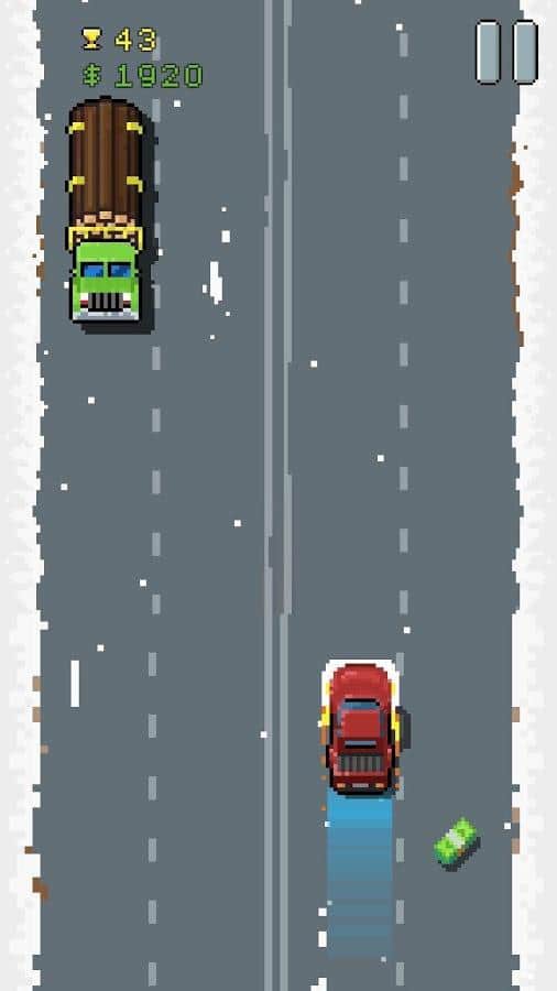 8Bit Otoyolu: Retro Yarış – retro tarzda Android için bir yarış oyunu, burada bir yarış arabasını kontrol altına alacak ve onu şehrin yollarında yönlendireceksiniz. Diğer araçlarla çarpışmalardan kaçınarak arabanızı ileriye doğru sürün ve öndeki araçları geçmek için yanlardan dolaşın. Yollar boyunca maksimum hızda yarışın ve polisten kaçmaya çalışın. Yolda para dolu kamyonları patlatın ve bu oyunda mümkün olduğunca uzun süre hayatta kalın. Maksimum puanı toplayın ve benzersiz özelliklere sahip yeni araçları keşfedin. Arkadaşlarınızla oynayın ve bu oyundaki en iyi rekorunuzu belirleyin.