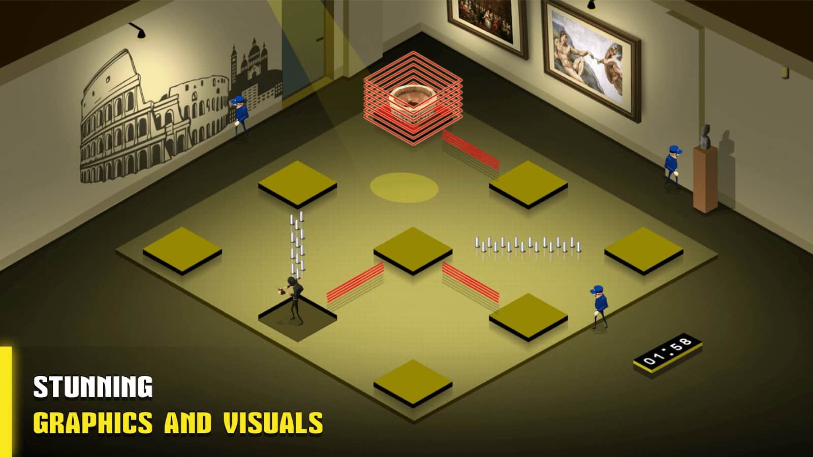 Bir Hırsızın Yolculuğu – Android için heyecan verici bir oyun, burada bir hırsızı yöneteceksiniz. Bu oyunda, hırsızın kontrolünü alacak ve her birinde soygun yapmanız gereken müze salonlarından geçireceksiniz. Karo üzerinde hareket edin ve seviyeleri zamanla geçin. Güvenlik görevlileriyle çarpışmamaya ve aynı karolar üzerinde iki kez hareket etmemeye çalışın. Zekânıza ve mantığınıza güvenin ve her hamlenizi dikkatlice düşünün. Oyunda toplamda 70'den fazla seviye, birçok çeşitli oda ve görev bulacaksınız. Her yeni seviyede oyunun zorluğu artacak ve hepsini geçmek için oldukça çaba sarf etmeniz gerekecek.