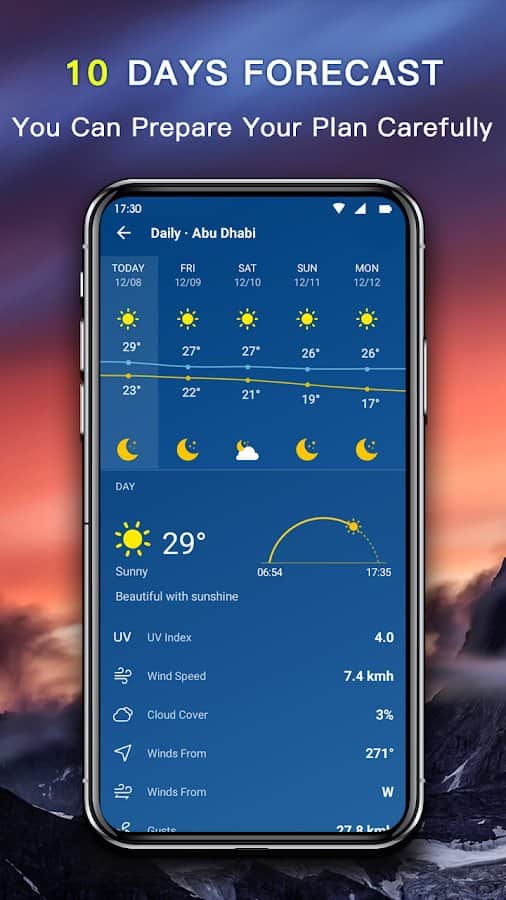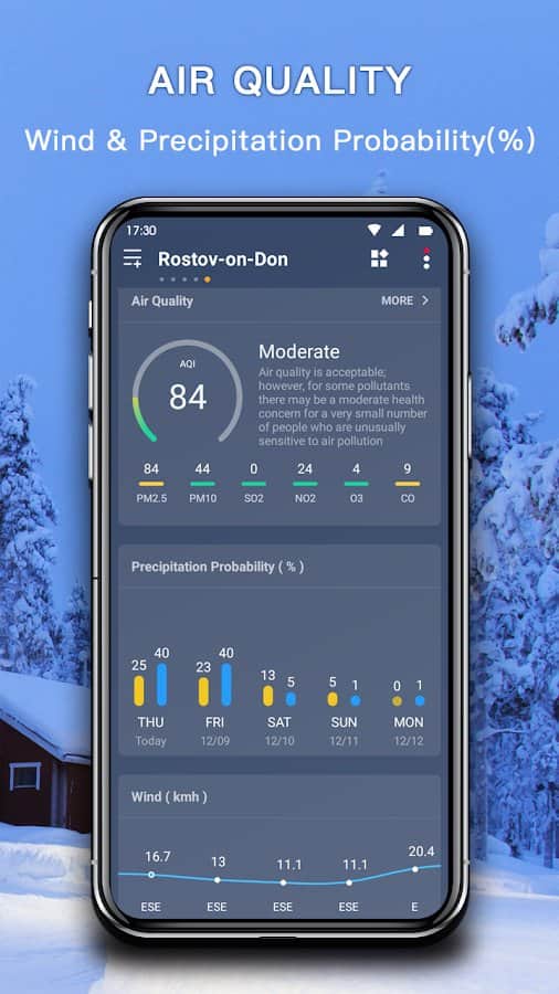 Kesin Hava Durumu Uygulaması PRO - çok iyi tasarlanmış bir hava durumu uygulamasının tam sürümüdür. Kullanıcılar tüm temel özelliklere ve olanaklara erişim sağlarken, herhangi bir kısıtlama olmaksızın hizmet alırlar. Bu, ürünü, dışarıdaki durumu takip etmek, giysi seçerken kısa vadeli tahminleri doğru bir şekilde değerlendirmek ve önümüzdeki günler ve haftalar için güvenle plan yapabilmek isteyen insanlar için en iyi seçim haline getiriyor. Ayrıca, bu yazılımın olumlu özellikleri arasında hoş bir arayüz, istenen çalışma parametrelerinin kolay ayarı ve diğer faktörler bulunmaktadır.