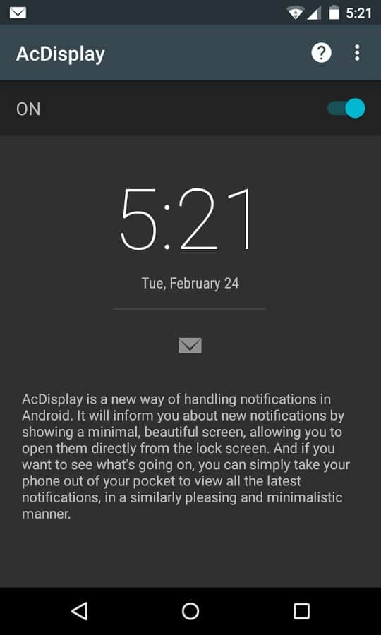 Uygulamanın, sensörlerin verilerine dayanarak akıllı telefonu uyandırma veya uyandırmama özelliği olması kullanışlıdır: cebinizdeyken ekran yanmayacak, ancak sensörün üzerine elinizi getirirseniz yanacaktır.