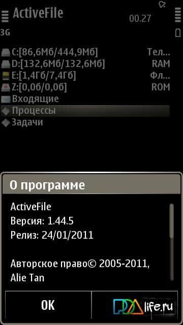 ActiveFile dosya yöneticisi, Allies firması tarafından yapılmış olup, Nokia telefonları için tasarlanmış diğer benzer programlardan gerçekten ilginç özelliklere sahip olduğu için ayrılmaktadır. Program, dosyalarla işlemler sırasında gerekli olabilecek dizinler ve klasörler arasında geçiş yapmak için 2 pencere kullanır. Kesme, kopyalama ve yapıştırma gibi temel işlemleri gerçekleştirir; dosya ve klasörlerin özelliklerini gösterir ve değiştirilmesine izin verir; dosyaları aramak ve bunları bluetooth üzerinden göndermek mümkündür. Program, gzip formatını kullanarak arşivleri sıkıştırmayı sağlar; arşivleri parçalara ayırma ve birleştirme imkanı sunar; onaltılık sistemde dosyaları görüntüleme yeteneğine sahiptir; bir görev yöneticisi vardır.