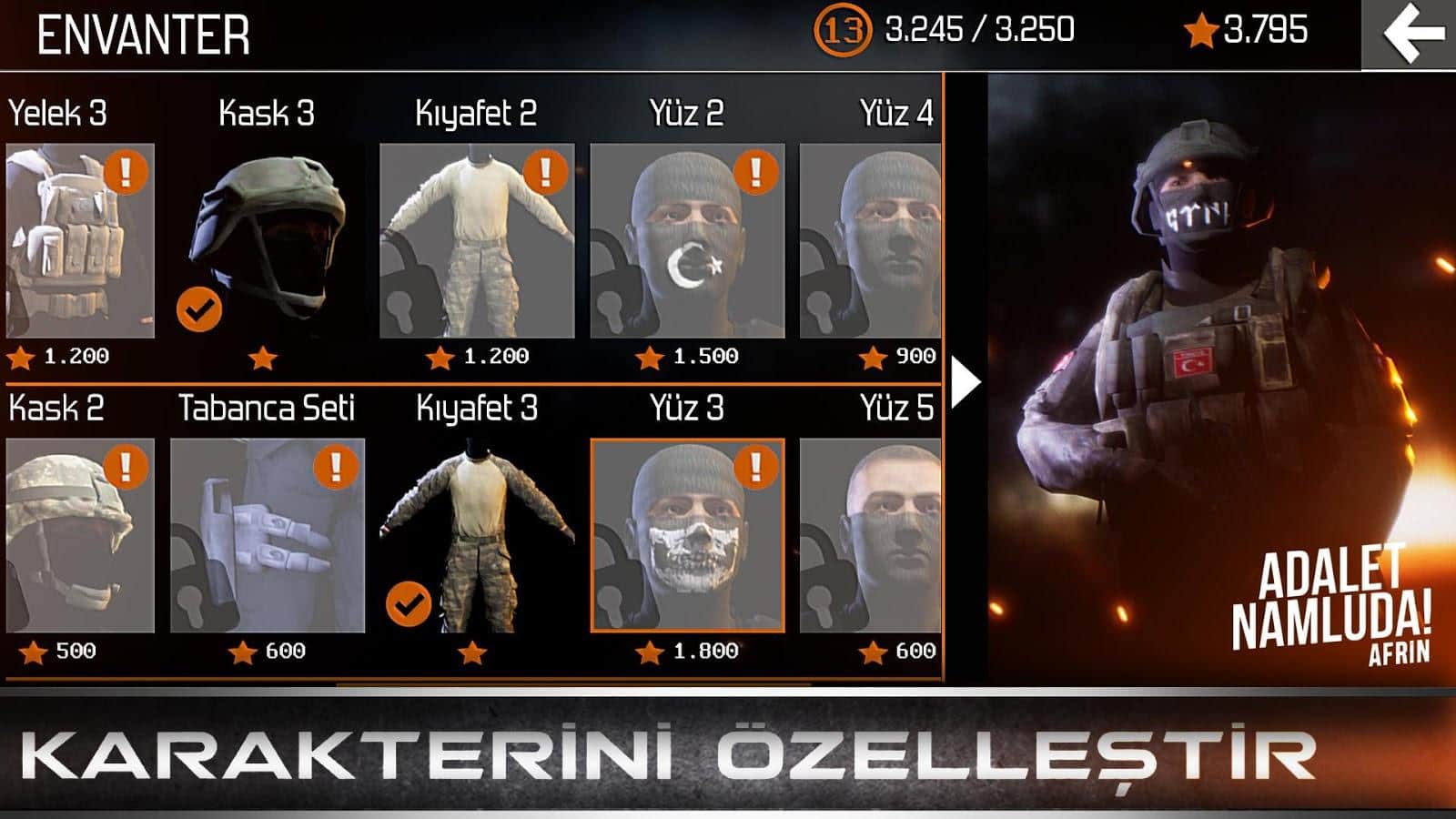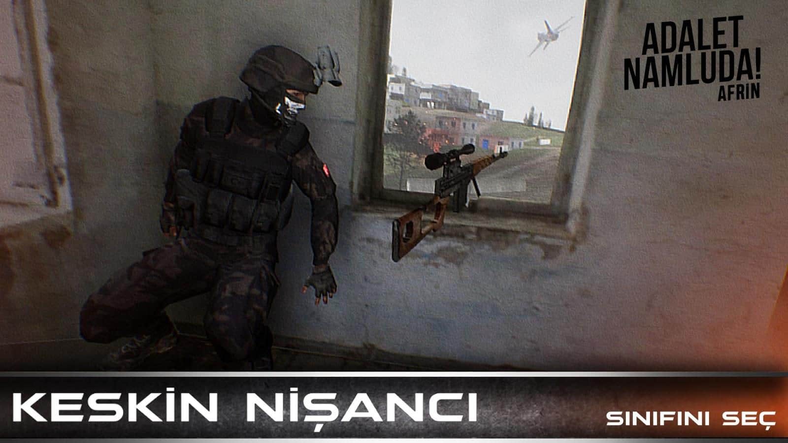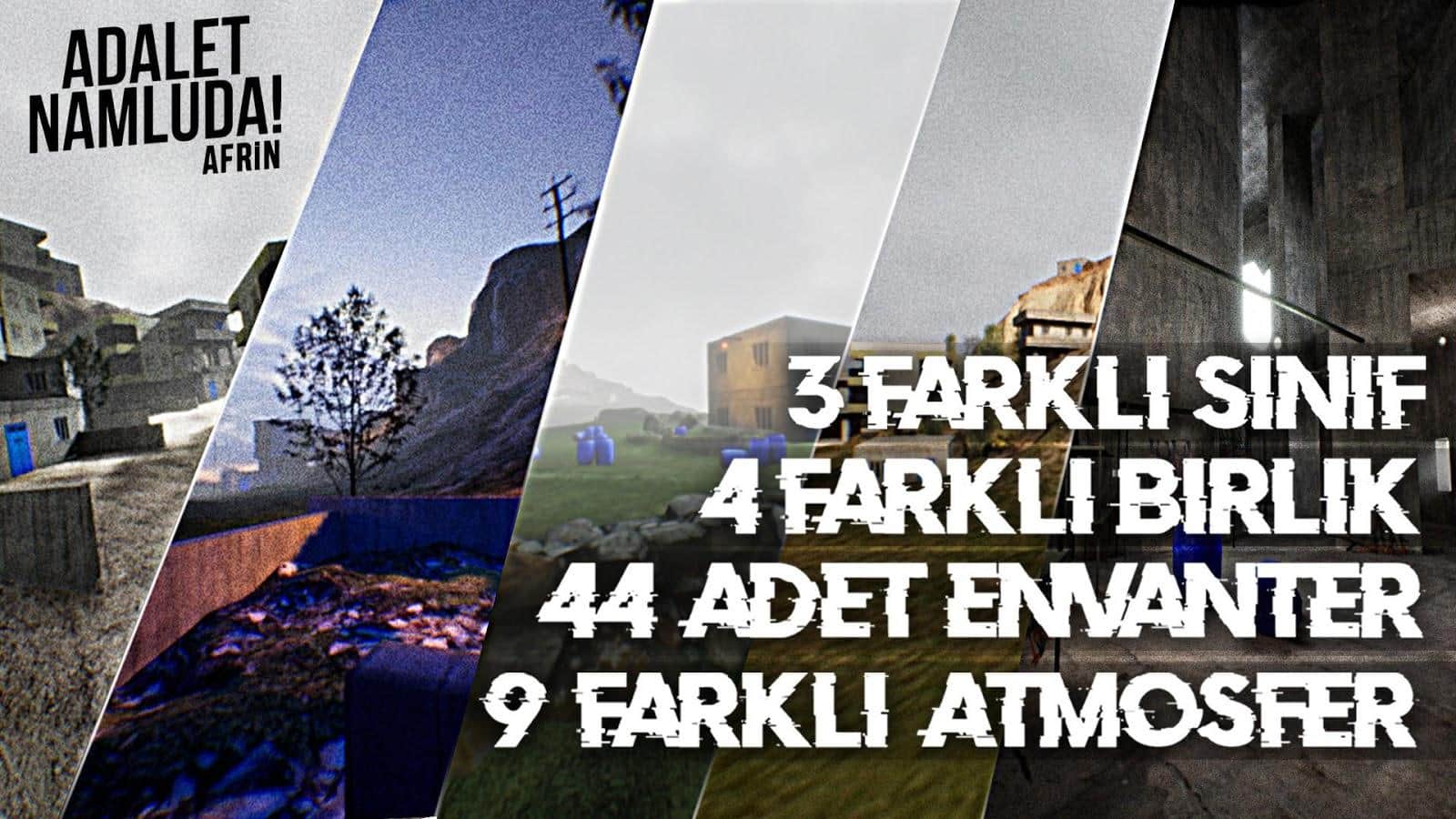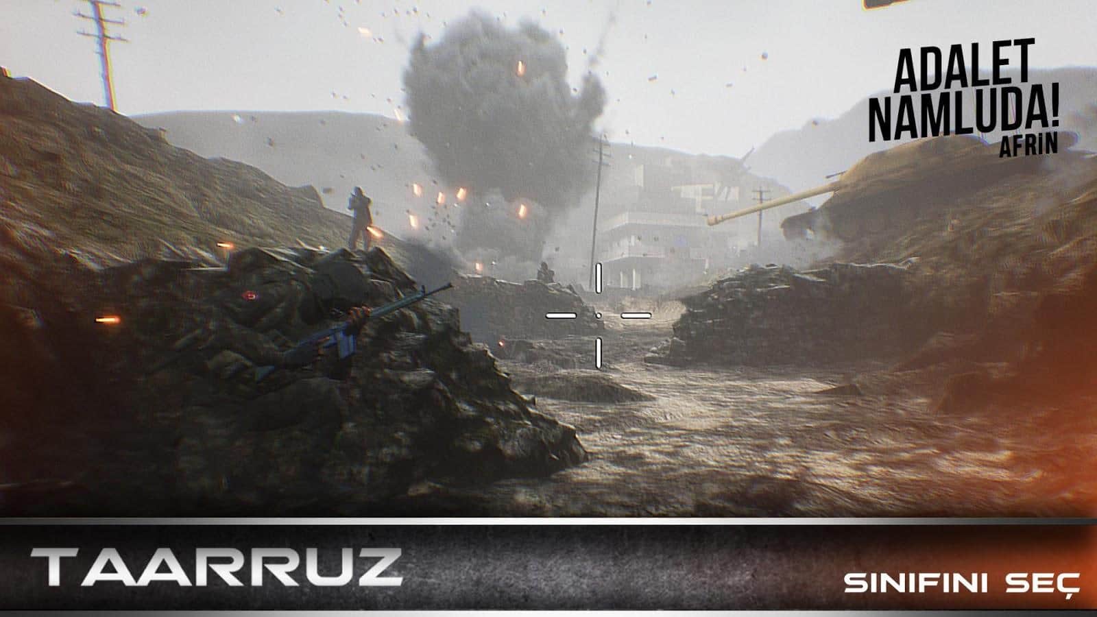 Adalet Namluda: Afrin – Android için bir aksiyon oyunu, burada Türkiye'nin 'Zeytin Dalı' silahlı güçlerini büyük bir operasyon gerçekleştirmek için yöneteceksiniz. Silahlı ve eğitimli savaşçıları kontrol altına alarak çeşitli lokasyonlarda düşmanları izleyip yok edin. Savaşçıların tüm beceri ve yeteneklerini pratikte kullanın, düşmanlarınıza gizlice yaklaşın veya keskin nişancı tüfeği kullanarak onları uzaktan yok edin. Yeni savaşçıları keşfedin ve onlara yeni giysiler ve silahlar giydirin. Bir savaşçı gibi hissedin ve komutanlık emirlerini yerine getirin.