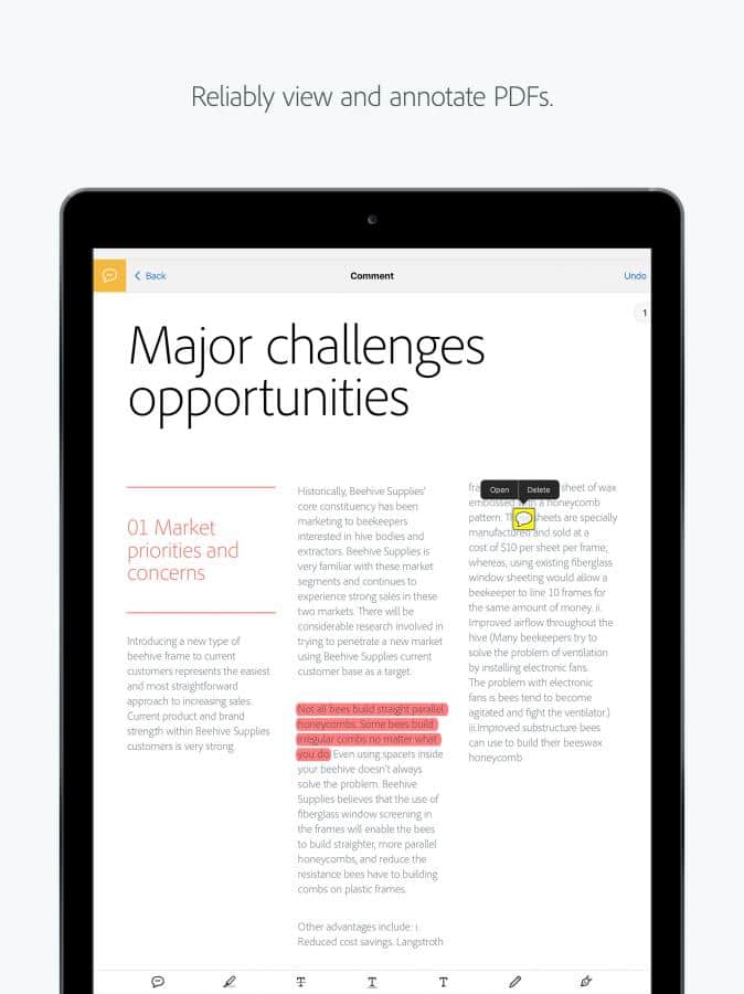 Yorumlar ile Adobe Acrobat Reader üzerinde iOS