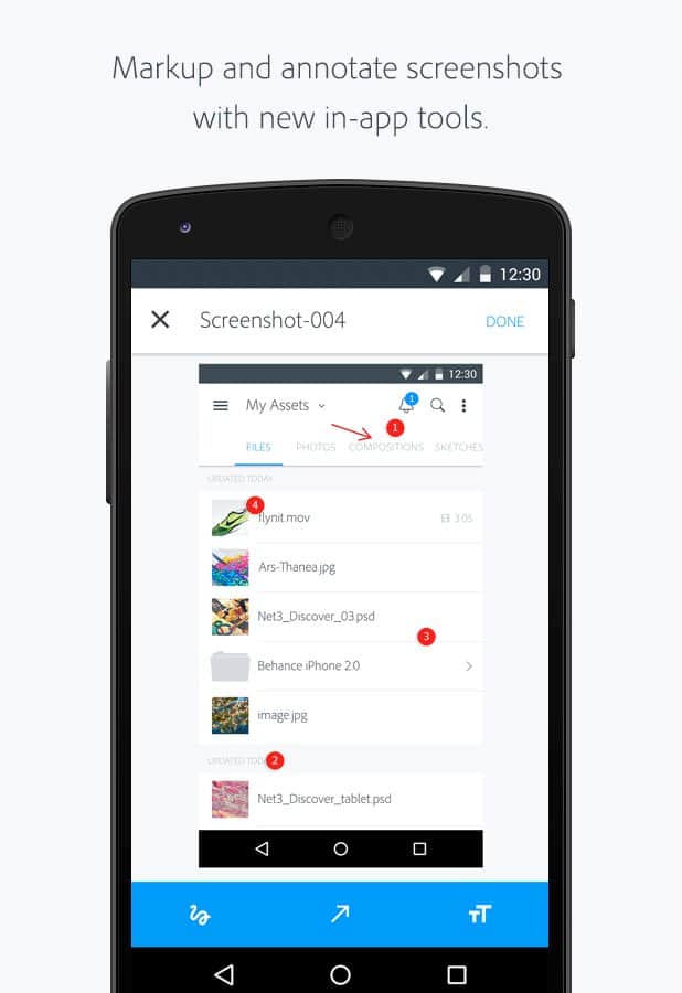 Yorumlar ile Adobe Creative Cloud üzerinde Android