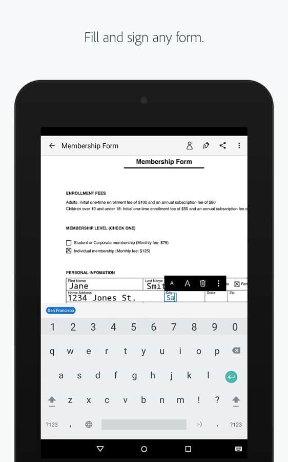 Adobe Fill & Sign DC - Popüler bir geliştiriciden benzersiz bir uygulama. Bu sefer Adobe, belgelerle uğraşan herkesin işini kolaylaştırdı. Bu uygulama sayesinde belgelerin elektronik kopyalarını oluşturabilirsiniz, ayrıca yapılarını ve hatta yazı tiplerini kaybetmeden. Sıradan bir belgeyi elektronik kopyaya mı dönüştürmek istiyorsunuz? Üstelik boş alanların kalmasını da mı istiyorsunuz? Artık bu sorun değil, bu uygulama ile her şey hızlı ve sorunsuz olacak.