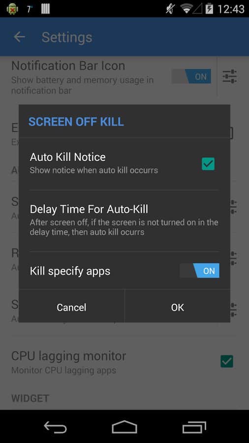 - Tek dokunuşla süreçleri sonlandıran widget