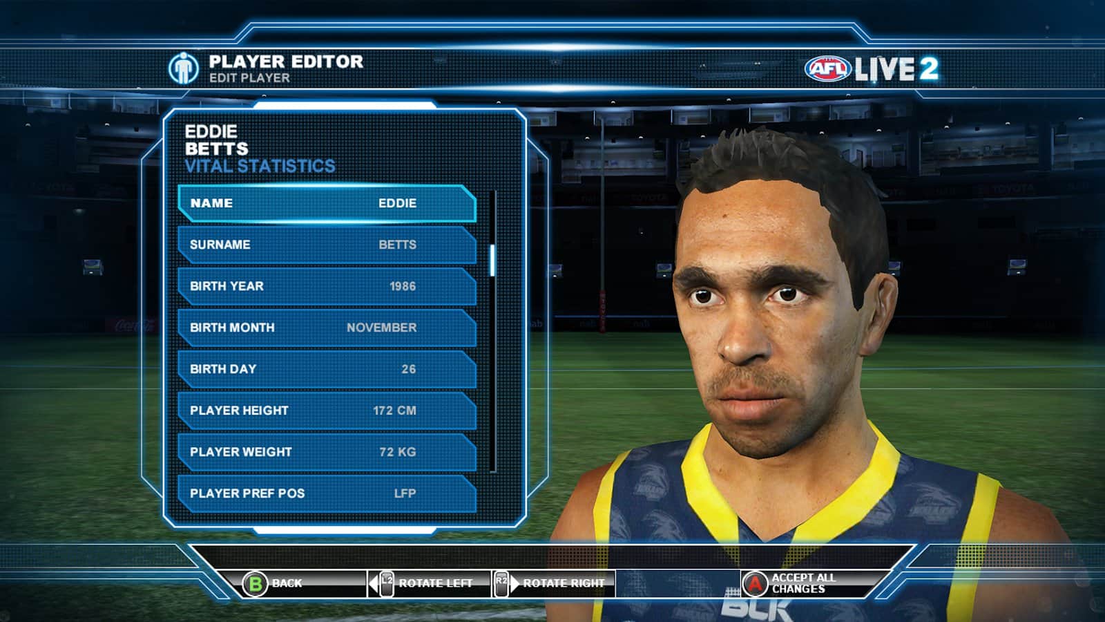 200'den fazla gerçekçi modellemeleri yapılmış AFL yıldız oyuncusuyla birlikte muhteşem 3D grafikler