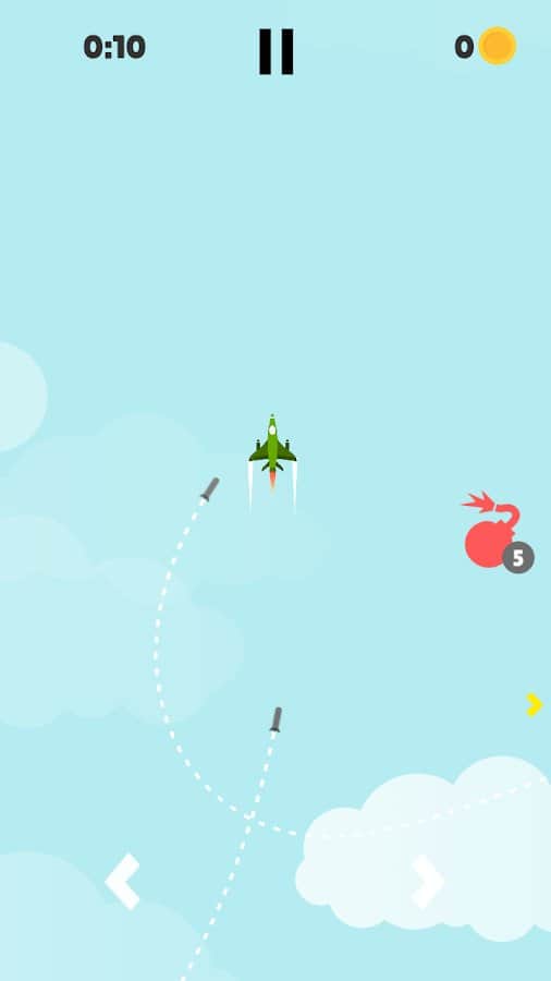 Hava Füzeleri – android için heyecan verici bir arcade oyunu, burada bir uçağı yöneteceksiniz. Uçak pilotu olun ve geniş alanlarda hareket ederken çeşitli manevralar ve ölü halkalar yapın. Bu oyundaki ana hedefiniz mümkün olduğunca çok para ve bonus toplamak ve peşinizdeki füzelerden kaçınmaktır. Günlük görevleri yerine getirin ve diğer oyuncularla en iyi sonuçlar için yarışın. Yeni uçaklar keşfedin ve füzelerden kaçmanıza yardımcı olacak bonusları kullanın.