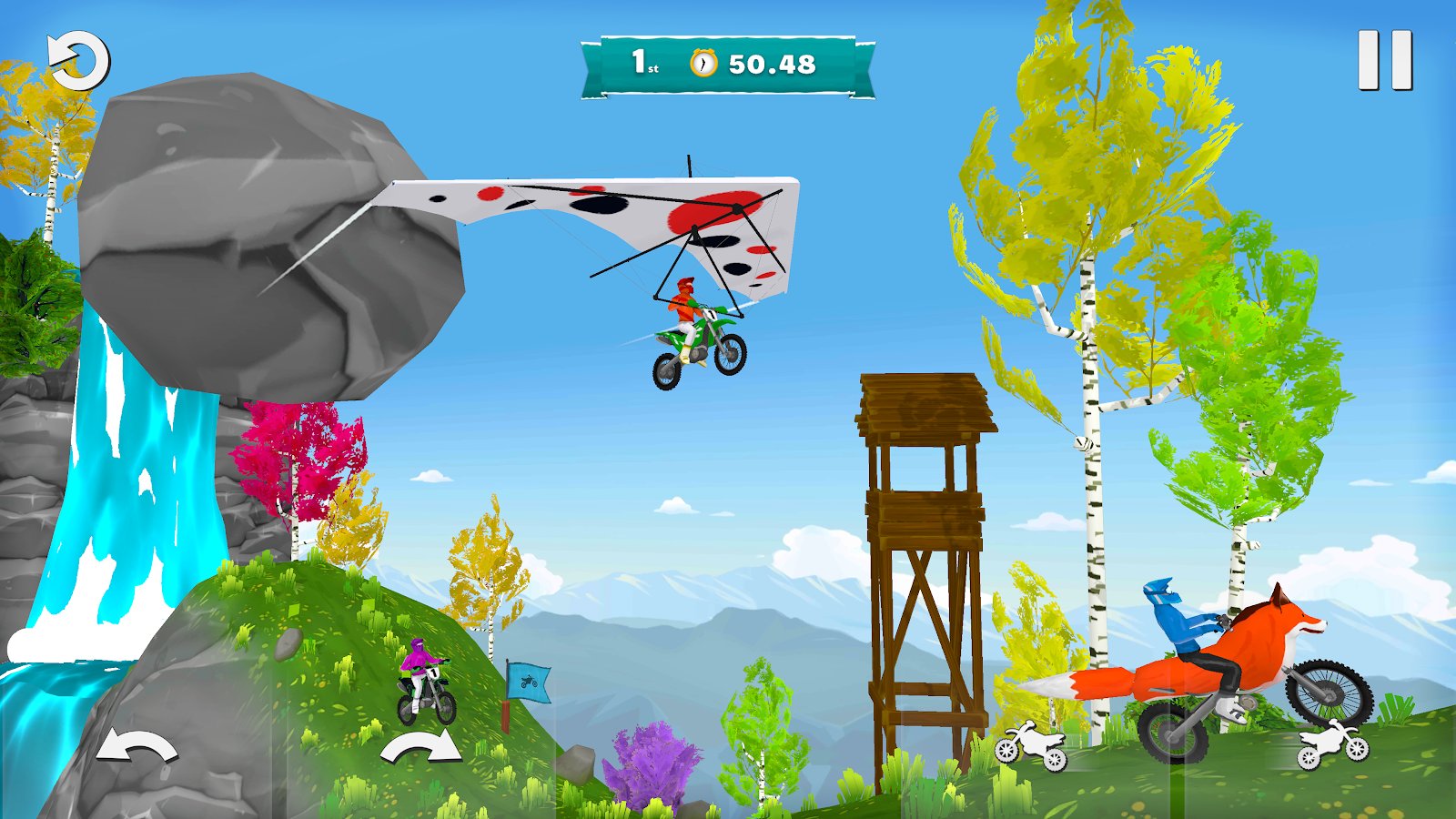 Pit bike ile deltaplanı birleştirerek havada çok fazla zaman geçireceksiniz. Özellikle nitro hızlandırıcı eklediğinizde! Vuhuu!
