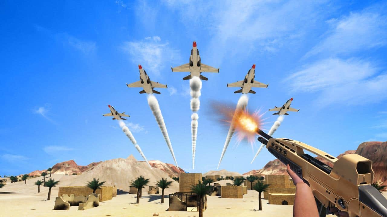 Uçak Nişancı 3D – bu oyunda bir saldırı tüfeğini elinize alacak ve düşman uçaklarını yok edeceksiniz. Oyundaki ana göreviniz, teröristlerin kötü niyetli planlarını gerçekleştirmelerine izin vermemek ve tüm hava araçlarını yok etmektir. Deneyimli bir nişancı rolünü üstlenin ve yaklaşan hedefleri gösterecek radarınıza dikkat edin. Bu oyunda çeşitli tüfekler, makineli tüfekler ve çok sayıda füze sistemini test etme fırsatınız olacak. Düşman uçaklarının, füze avcılarının ve helikopterlerin gözlerinizden kaçmasına ve görevlerini yerine getirmesine izin vermeyin. Farklı lokasyonlarda hareket edin ve düşman hedeflerine kesintisiz ateş açın.