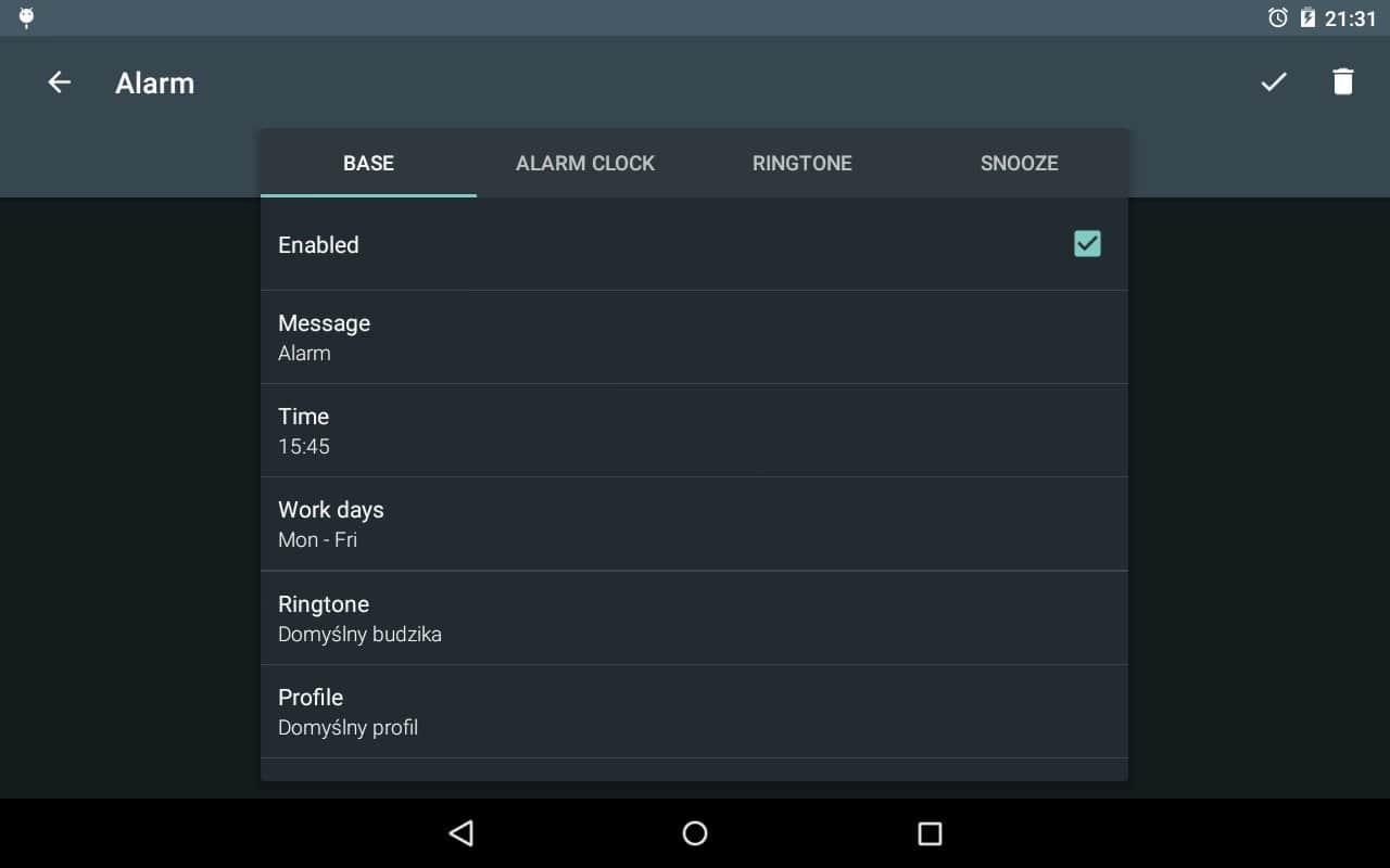 Alarm saati – sadece bir alarm saatinden daha fazlasıdır. Uygulama, günü saat ve dakikalarla planlı olanlar için mükemmel bir şekilde uygundur. Program, sadece sabah işe uyanmanızı sağlamakla kalmaz, aynı zamanda görevler ve hatırlatmalar listesi oluşturabilir. Takviminizi birkaç gün öncesinden planlayabilir ve uygulama her zaman önemli bir toplantı veya başka bir hatırlatma hakkında önceden bilgi verecektir.