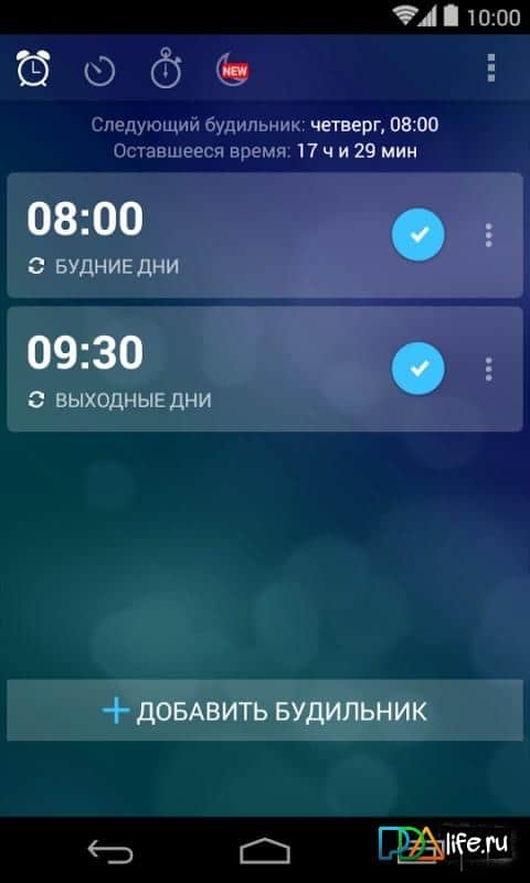 Burada birden fazla alarm oluşturma, müzik veya seçilen sanatçının ya da çalma listesinin rastgele bir parçası gibi çeşitli uyanma efektleri bulunmaktadır. Ayrıca belirli bir uygulamanın otomatik olarak başlatılması da sağlanmıştır.