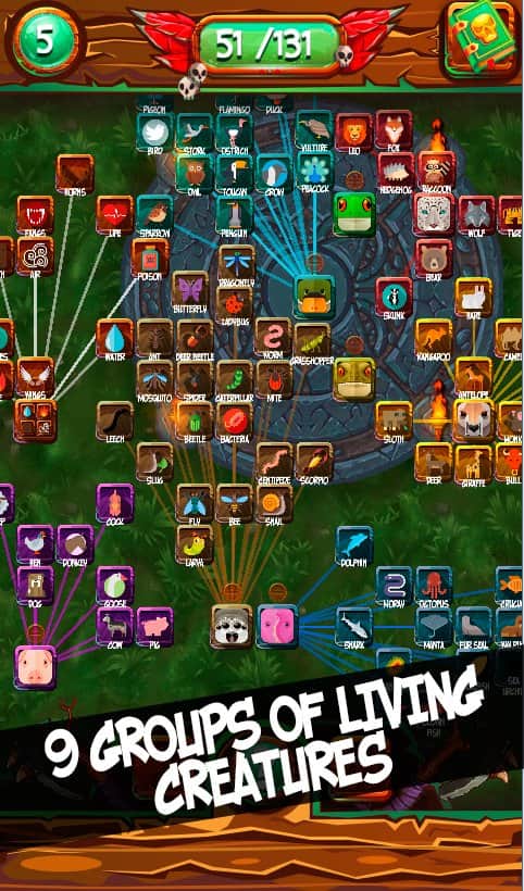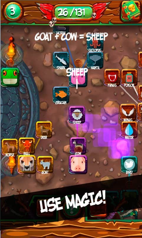 ALCHEMY ANIMALS – Android için heyecan verici bir bulmaca, burada aynı öğeleri birleştirip hayvanlar yaratacaksınız. Toprak, ateş, su ve hava gibi temel öğeleri kullanarak yeni hayvan türleri yaratacağınız sihir ve simya dünyasına dalın. Farklı sihir ve genetik bilgilerini uygulayın ve kendinize özgü bir hayvan koleksiyonu oluşturun. Zor durumlarda ipuçlarından yararlanın ve oyunun tüm seviyelerini geçin. Görevleri ve misyonları yerine getirin ve 100'den fazla hayvan türü oluşturun. Arkadaşlarınızla oynayın ve bilgilerinizi ve yeteneklerinizi paylaşın.