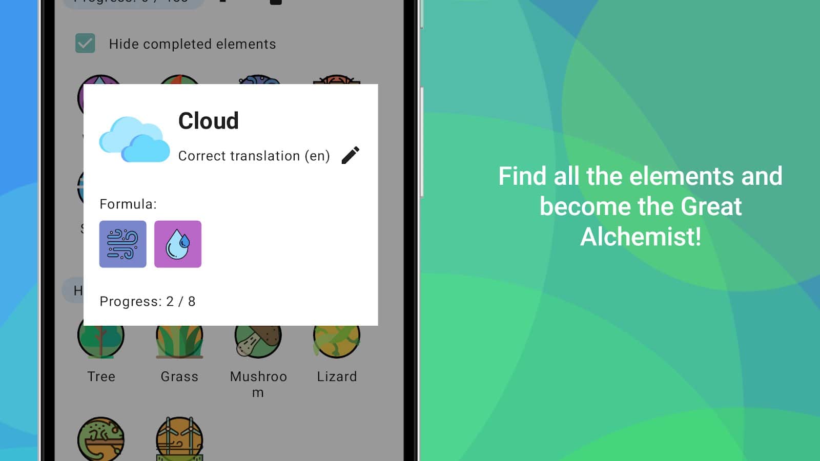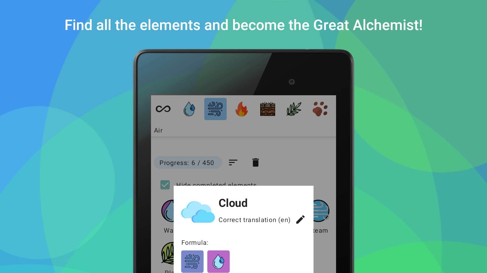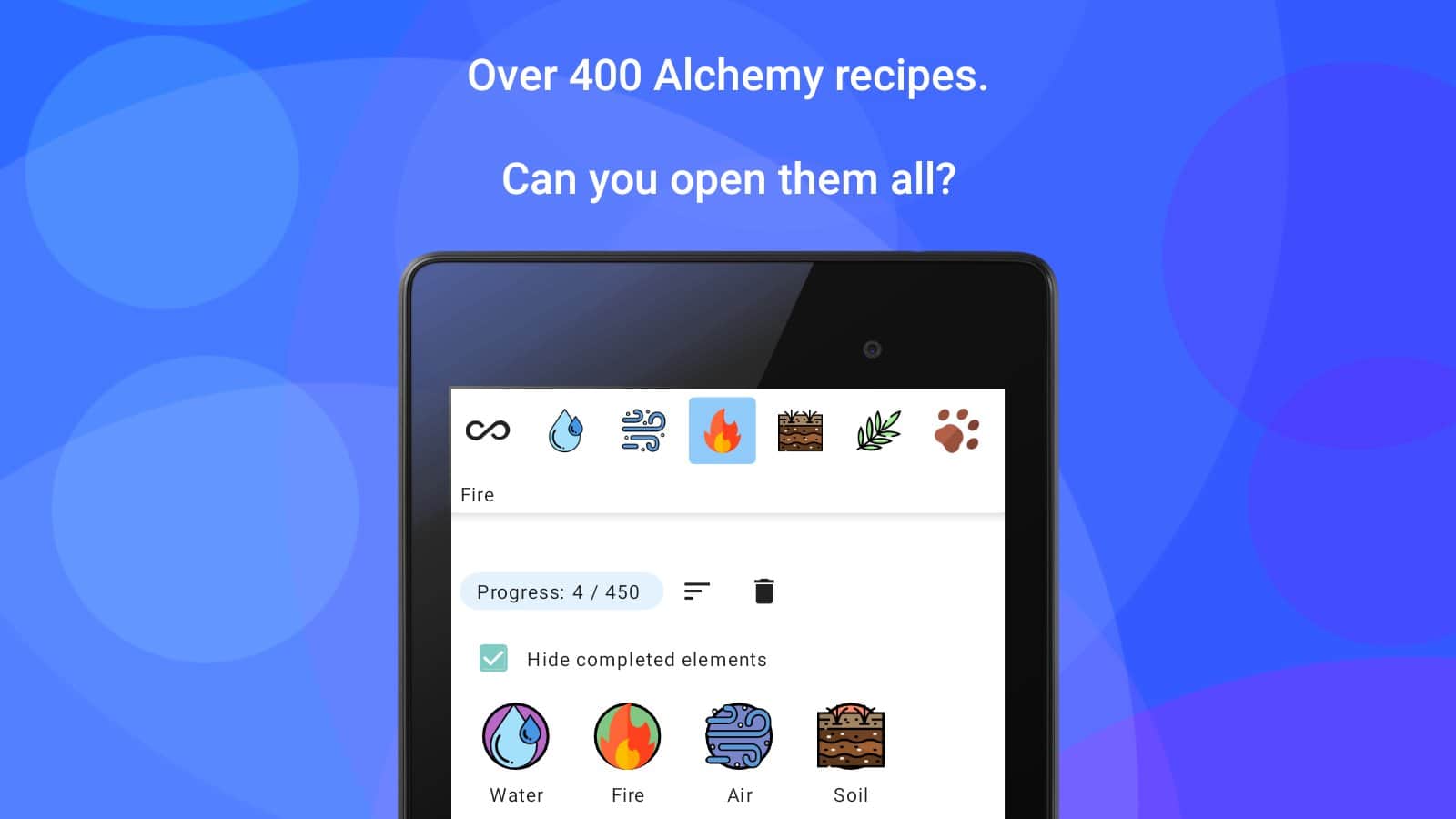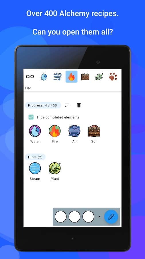 Simya - Karıştır ve keşfet! - Önce ateş, su, hava ve toprak vardı, sonra her şey ortaya çıktı. Bu dört elementle, yeni olaylar yaratma fırsatına sahip olacaksınız, böylece dünyanın gelişimine devam edebilir ve medeniyetlere ulaşabilirsiniz. 400'den fazla tarifi keşfedin, ipuçlarını kullanmamaya çalışın, sadece bilime değil, aynı zamanda kendi sezginize de güvenin. Oyunda bilimsel araştırmalara ve bilimsel gerçeklere tam olarak uyulması gerekmemektedir. Farklı mevcut nesneleri karıştırarak simyanın gizli sırlarını keşfedin!