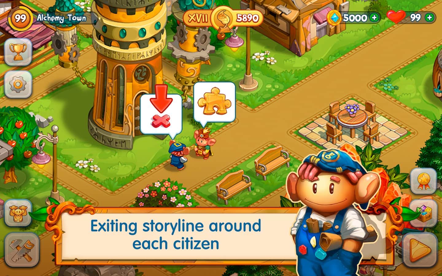 Simya Kasabası - yaratıcılarının birkaç popüler türü birleştirmeye karar verdiği heyecan verici bir oyundur. Temel olarak, üçlü ve daha fazla sihirli unsuru bir araya getirerek çeşitli başarılar, ödüller, kaynaklar ve daha fazlasını elde edeceksiniz. Biriktirdiğiniz her şeyi, yıkılmış şehri yeniden inşa etmek için kullanmanız gerekecek. Felaketin, başarısız bir sihirli deneyin sonucu olarak gerçekleştiğini belirtmek gerekir, bu nedenle sizi simya, sihir denizi ve mistik sırlar bekliyor. Yerli bir sihirbaz ve simyacı ile birlikte çalışarak yıkılmış şehri yeniden inşa etme görevine devam edeceksiniz. Harika grafikler, oyun türlerinin karışımı ve Rusça desteği, benzer oyunların tüm hayranlarına hitap edecek.