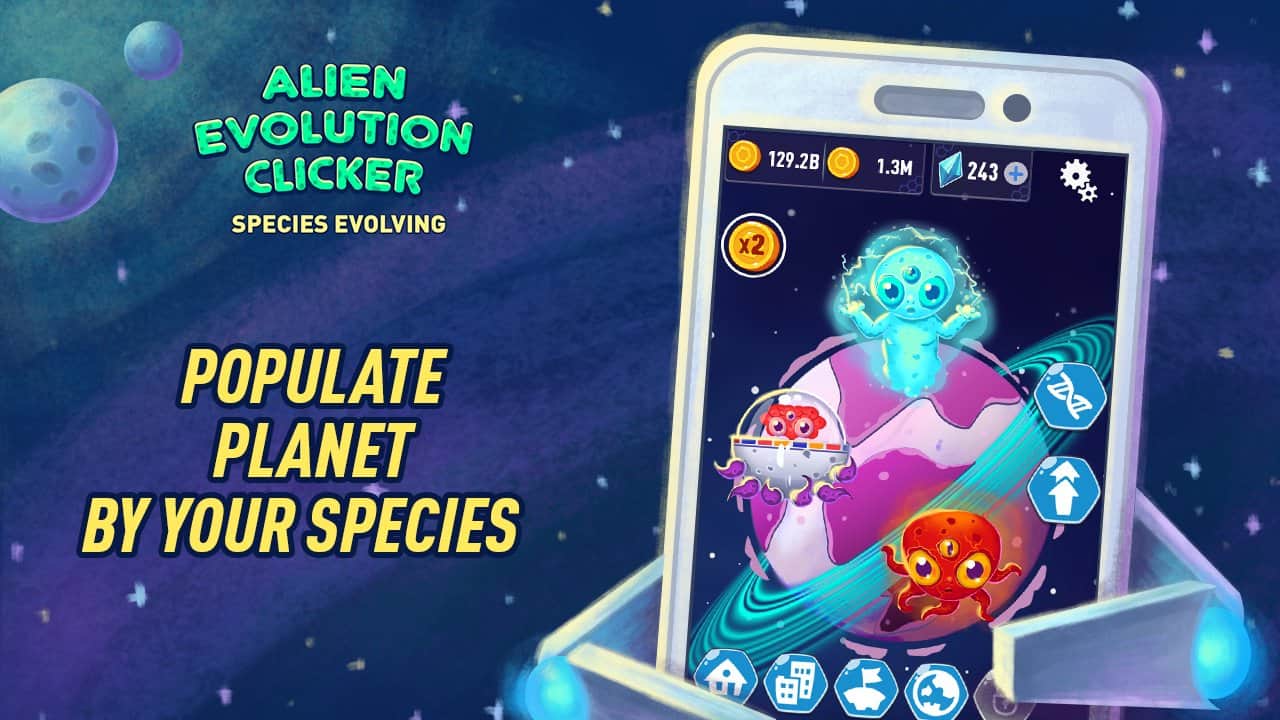 Uzaylı Evrimi Tıklayıcı: Türlerin Evrimi – Android için heyecan verici bir oyun, burada türlerin evrimine katılacaksınız. Bu oyunda başka bir gezegene geçeceksiniz, burada yaşam yeni başlıyor ve çeşitli varlıkları karıştırıp bir süper zeka ve yüksek enerjili varlıklar elde edeceksiniz. Gezegeninizde sıradan tek hücrelilerden balıklara, kabuklulara, sürüngenlere ve maymunlara kadar yeni türler yaratın, eğer şanslıysanız yeşil insanları bile elde edebilirsiniz. Kristaller kazanın ve böylece evrimi hızlandırın. Genlerin karıştırılmasıyla çeşitli deneyler yapın ve tamamen yeni türler elde edin.