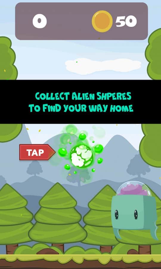 Uzaylı Eve Gitti – eğlenceli bir uzaylıyı yönetin ve onun uzay gemisine geri dönmesine yardımcı olun. Kahramanın gemisi, otomatik pilotta bilinmeyen bir yöne gitti ve şimdi onu bulmak için uzaylının birçok konumu keşfetmesi ve plazma kürelerini toplaması gerekiyor. Kahramanın onlara yaklaşması için kürelere tıklayın ve böylece gökyüzünde daha yükseklere çıkın. Ayrıca yol boyunca altın paraları toplamayı ve uzaylının komik yüz ifadelerini ve mimiklerini izlemeyi unutmayın. Farklı dünyalarda seyahat edin ve arka plan olarak kendi fotoğraflarınızı veya resimlerinizi yerleştirin.