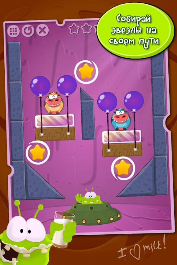 Uzaylılar Sütü Sever - Android için harika bir bulmaca oyunu, burada eğlenceli ana karakter inek sütünü çok seviyor! Göreviniz, bu lezzet düşkünü en sevdiği yemekle beslemek. İnekleri ve sütü almak için zeka, mantık, mekanizmalar ve hileler kullanın, numaralar ve tuzaklar kurun! Uçan dairenize atlayın ve lezzetli yiyeceklerin peşinde uzayın derinliklerine doğru yolculuğa çıkın!