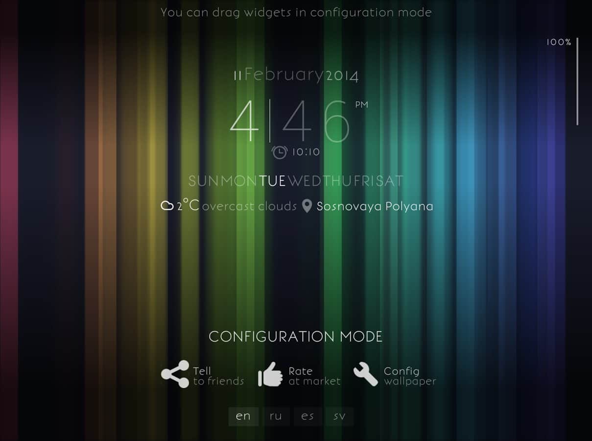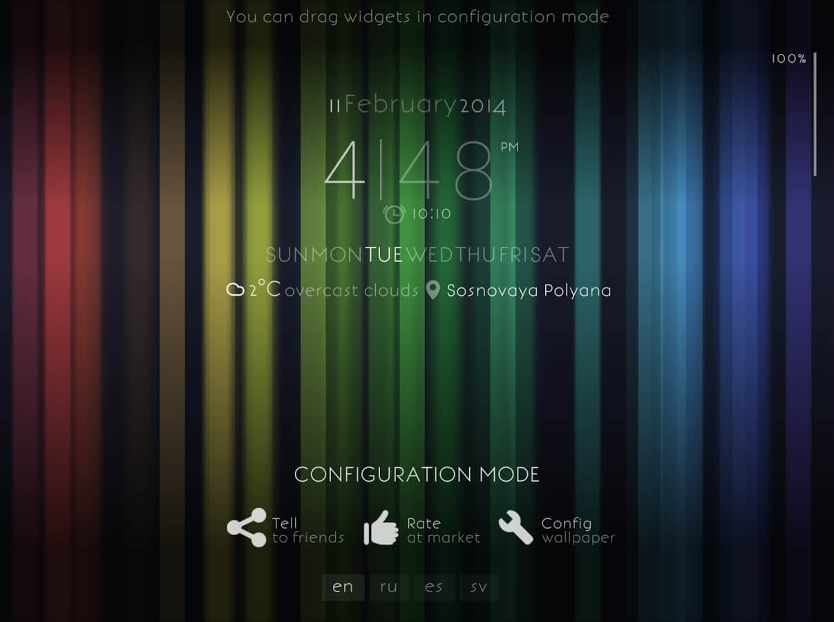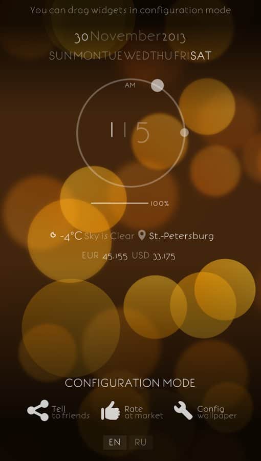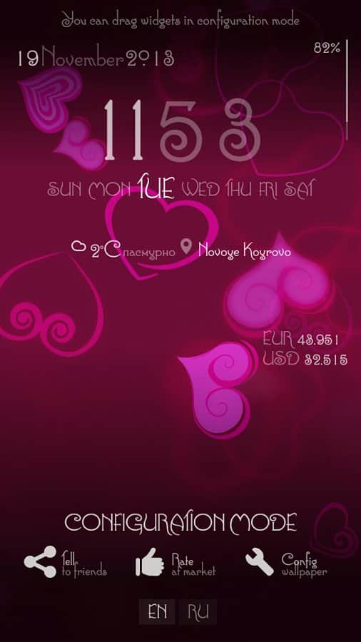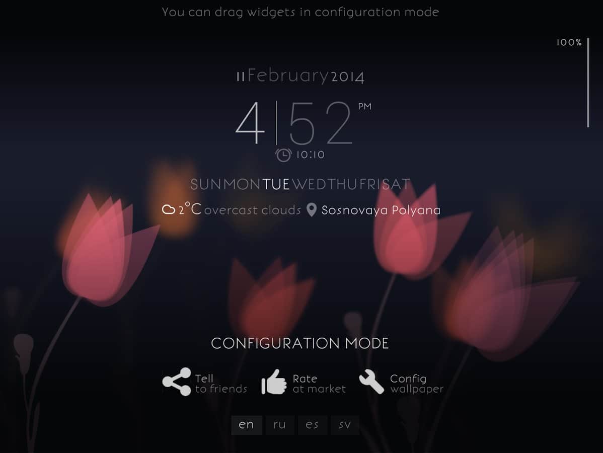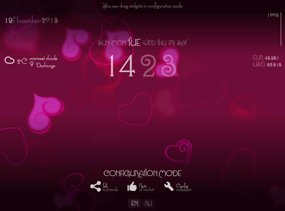 - Hava durumu tahmini, saat, gün, tarih, döviz kurları, pil durumu - ayar modunda ekranda rastgele yerleştirilebilir.