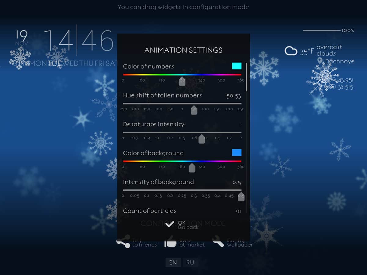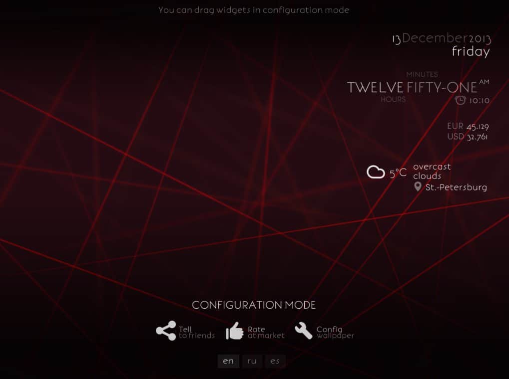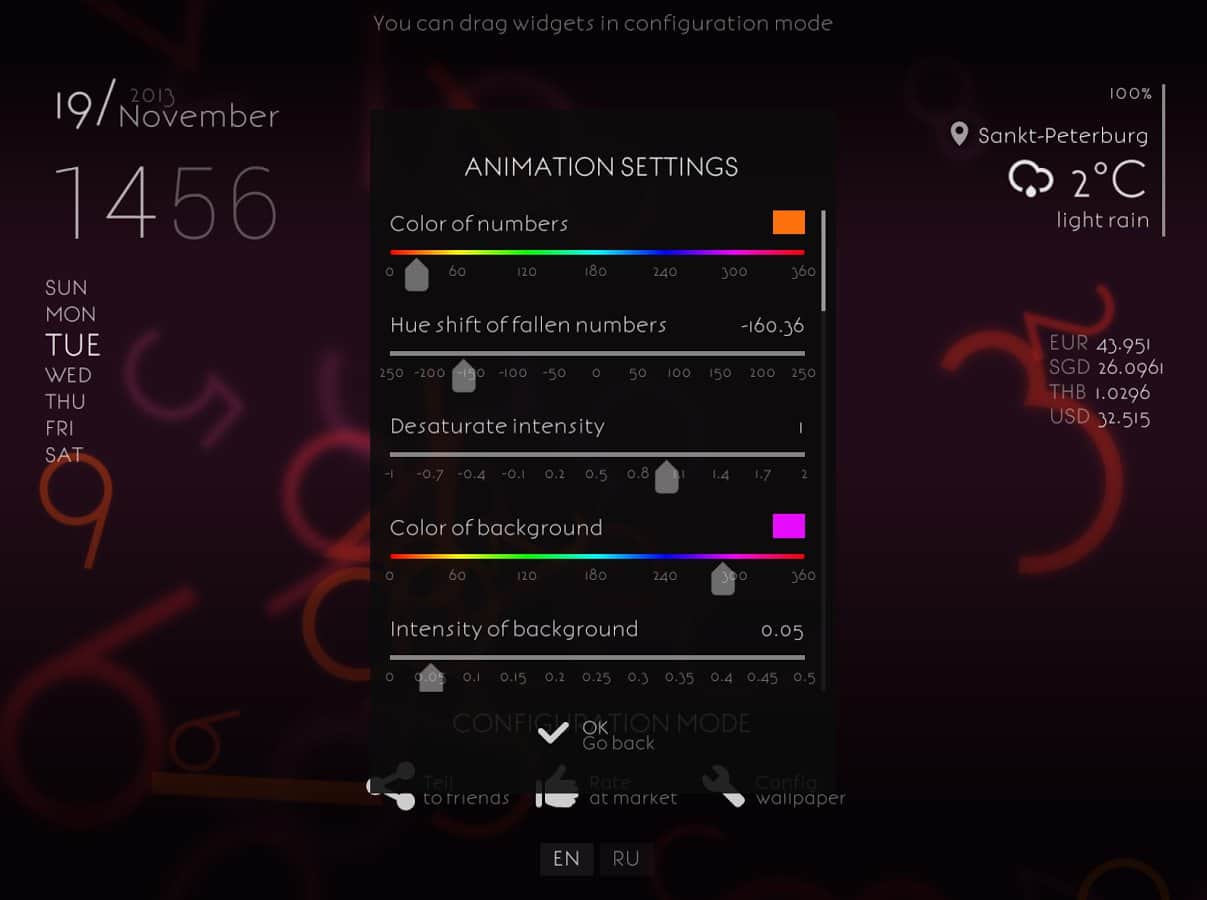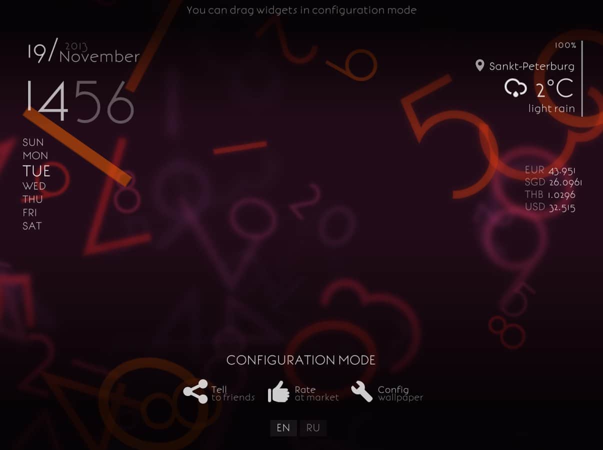 Canlı sayılar 2 – Calibvr LLC geliştiricisinden güzel canlı duvar kağıtları, minimalist canlı arka planlar seti ile dolu. Bu duvar kağıtlarını indirip kurduğunuzda, parallax efekti ve akıcı animasyonlar ile hem kendi özel widget'larınızı bulacaksınız, hem de daha fazlasını. Ayrıca, Canlı sayılar 2'nin, kişisel ihtiyaçlarınıza en uygun hale getirmenizi sağlayacak birçok ayar içerdiğini de belirtmek gerekir. Güzel, işlevsel, kaliteli ve rahatsız edici olmayan bir deneyim sunuyor.