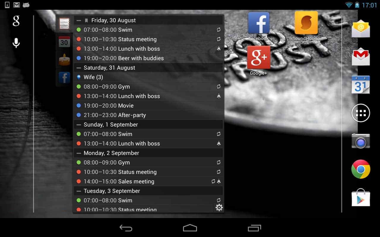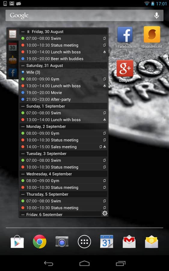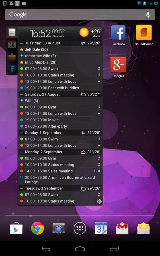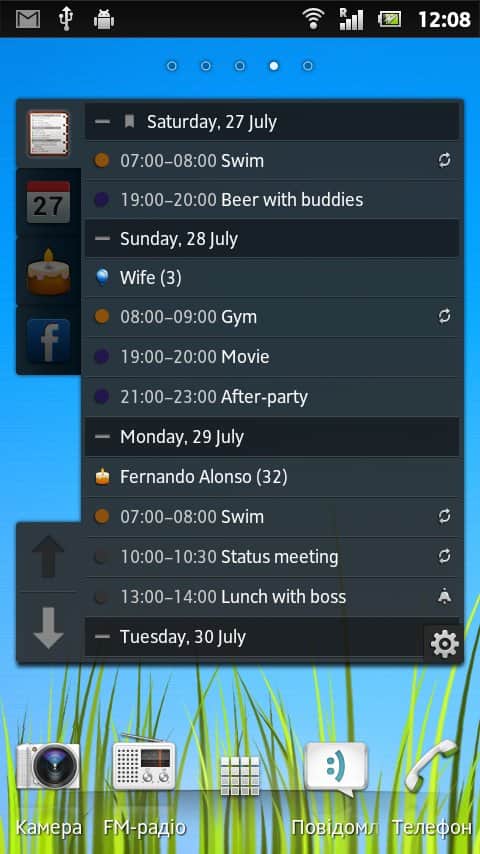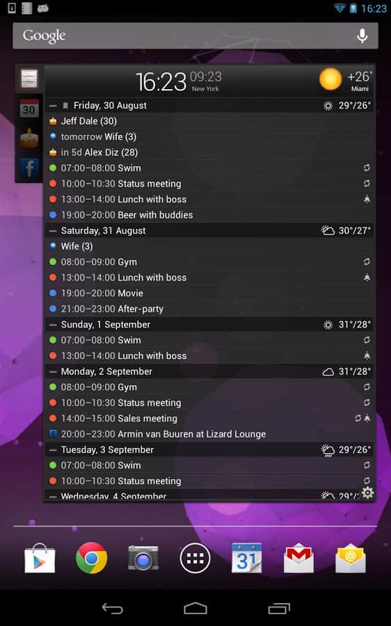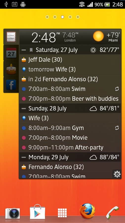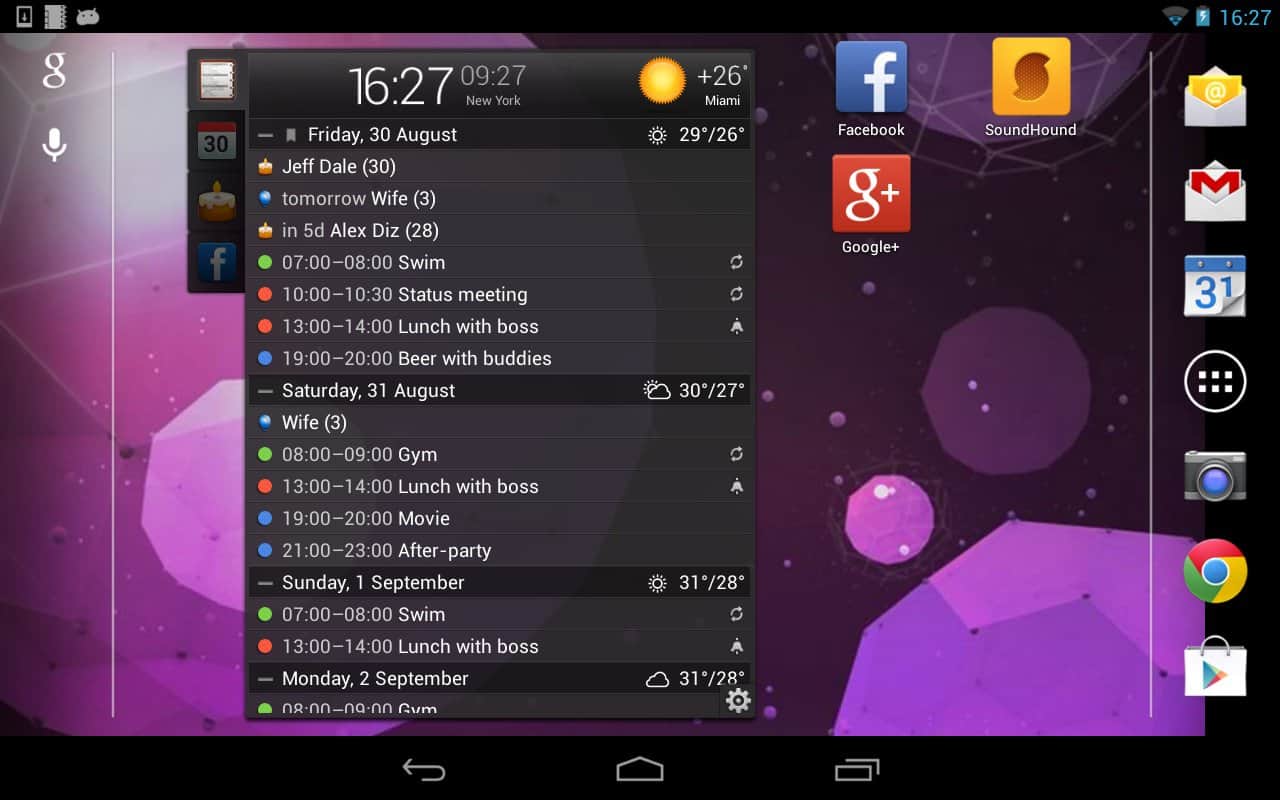 Masaüstleri çeşitli bilgi widget'larıyla dolup mu taştı? Tüm dağınık bilgileri tek bir blokta birleştirmenin bir yolu var. Burada günün takviminden alınan programı, yaklaşan doğum günlerini, Facebook'tan gelen verileri ve hava durumu tahminini bulacaksınız. Widget'tan yeni etkinlikler eklemek veya ayarlara geçmek son derece kolay. Tek olası zorluk, widget'ta kullanılan oldukça küçük yazı tipi, maksimum bilgiyi ekrana çıkarmaya olanak tanırken, görme engelli kişiler için bir engel teşkil edebilir.