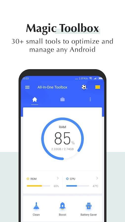 Hepsi Bir Arada Araç Kutusu - Cihazınızı temiz tutun, çünkü bu çok önemlidir ve çalışma kalitesini ve ömrünü doğrudan etkiler. Bu uygulama, cihazınızı gereksiz şekilde doldurmanızı önlemek için oluşturulmuştur. Kullanmadığınız eski dosyalardan veya oyun ve programları sildikten sonra kalan dosyalardan kurtulmanıza yardımcı olacak ve akıllı telefonunuzu gereksiz yere doldurmaktan kurtaracaktır. Ayrıca, cihazınızın performansını gerçek zamanlı olarak takip edebilir ve istediğiniz zaman gereksiz süreçleri tek bir tıklama ile kapatabilirsiniz. Basit ve anlaşılır bir arayüz ile birlikte hiçbir gereksiz işlev yok, işte bu harika uygulama hakkında söylenebilecekler.