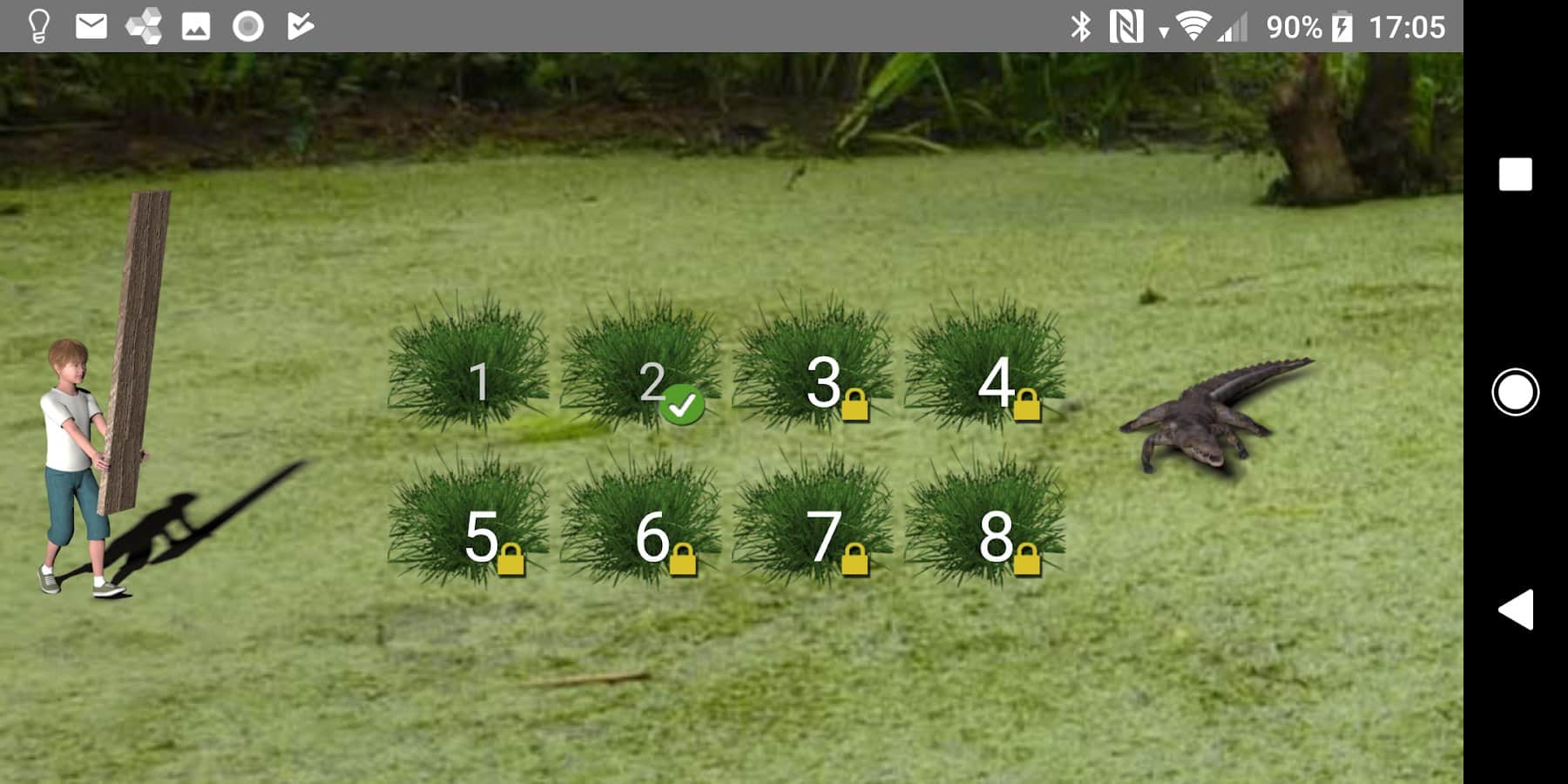 Alligator ve Max (Reklamsız) – Android için heyecan verici bir bulmaca oyunu, burada Max'in bataklığı geçmesine yardımcı olacaksınız. Karakterimiz aç aligatordan kaçmak için bir bataklığın içine düştü ve şimdi ana göreviniz, onu ağaç kütükleri arasında ahşap tahtaları hareket ettirip yerleştirmesine yardımcı olmaktır, böylece aligatorun ağzına düşmesin. Her hareketi dikkatlice düşünün ve aligatoru kandırarak tüm seviyeleri geçmeye çalışın. Yeterli puan toplayın ve arkadaşlarınızla çeviklik ve zekâda rekabet edin.