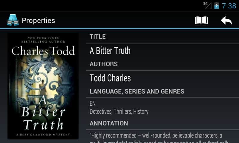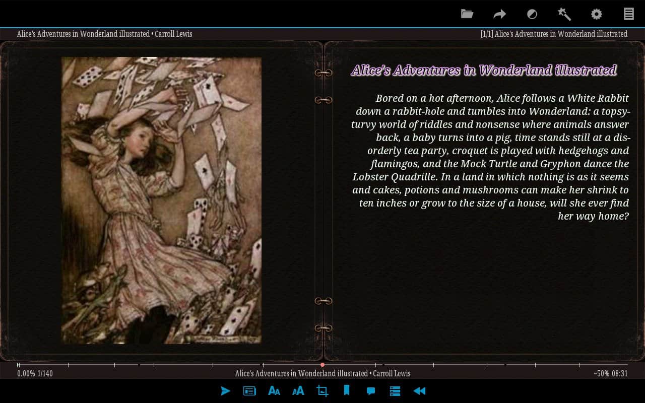 Kullanıcı dostu ve akıcı bir arayüze, birçok format desteğine (fb2, txt, epub, html, doc, docx, rtf, mobi vb.) ve ZIP ile GZ arşivleriyle çalışma yeteneğine sahiptir; ayrıca TTS desteği de mevcuttur.