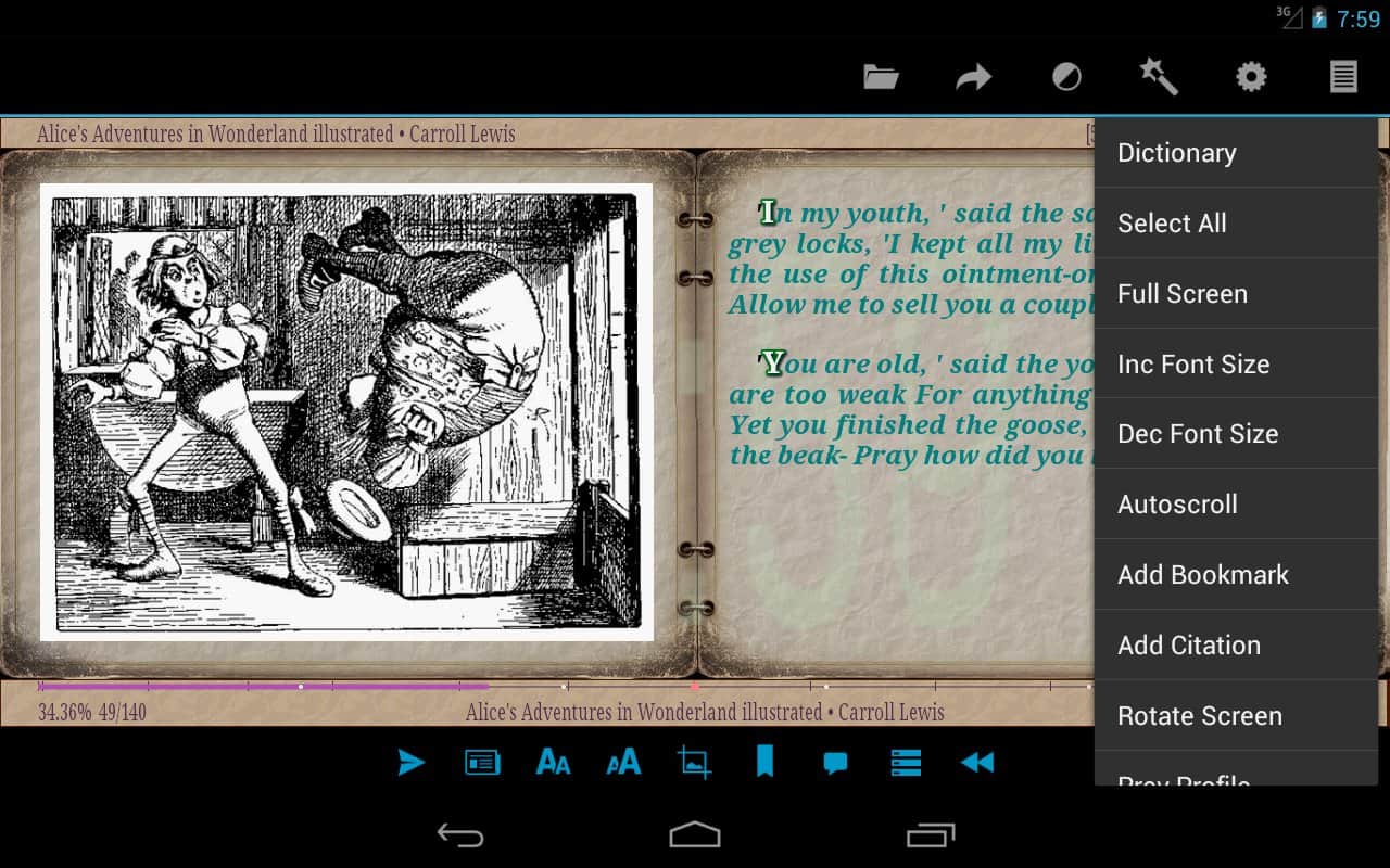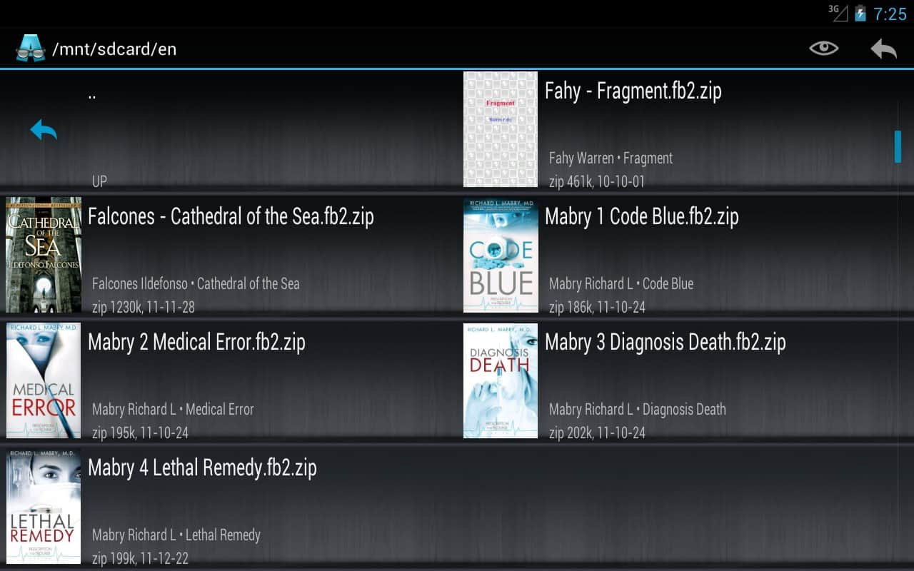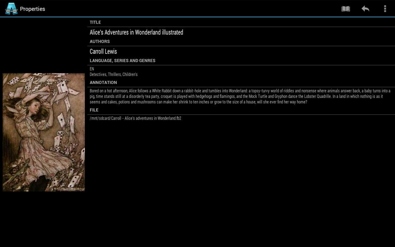 Bazı formatlarda içerik ve bağlantılarla çalışma imkanı mevcuttur, her format için kullanışlı bir navigasyon vardır; eğer butonlara başvurmak istemiyorsanız, önceden tanımlı jestleri (kısa ve uzun dokunuşlar, kaydırmalar) kullanabilirsiniz. Ana ekrana yalnızca uygulama simgesini değil, aynı zamanda belirli kitapların kısayollarını da ekleyebilirsiniz.
