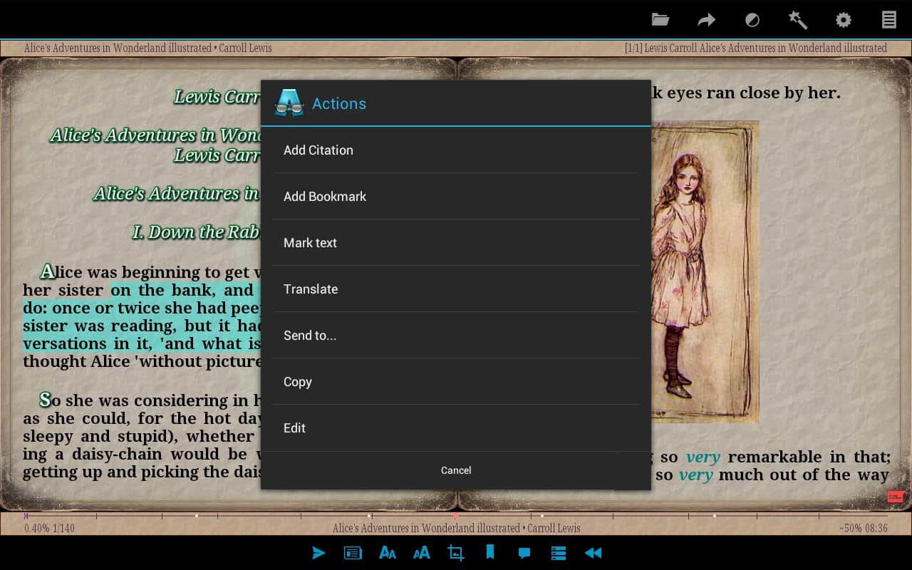 Yer imleri, alıntılar oluşturma imkanı sağlanmıştır, gerekiyorsa metin vurgulama da mümkündür. Bazı okuyucular, sözlükleri bağlama imkanını sevecektir.