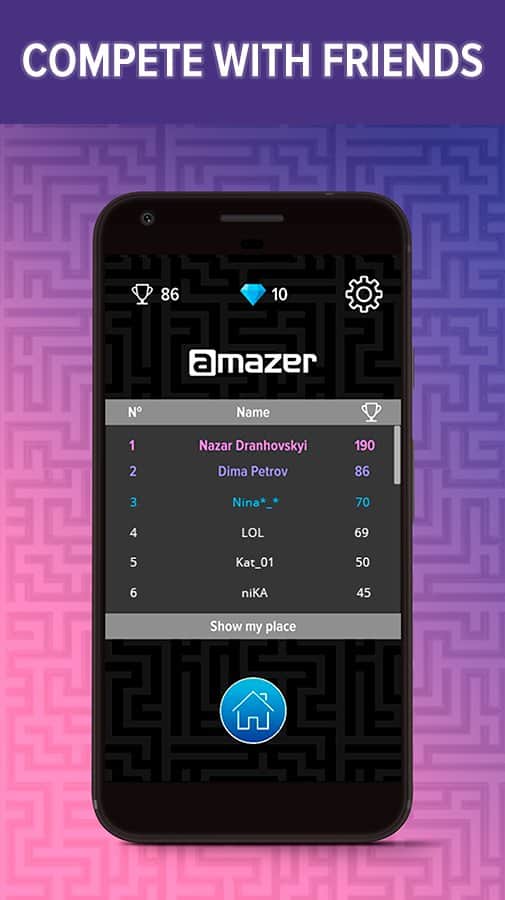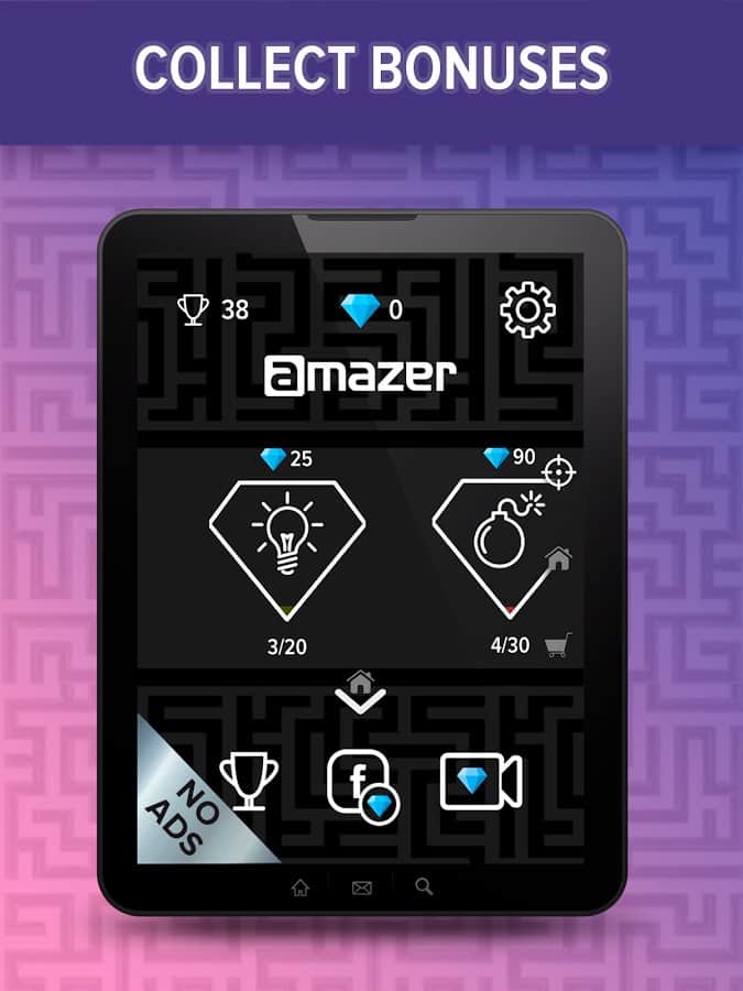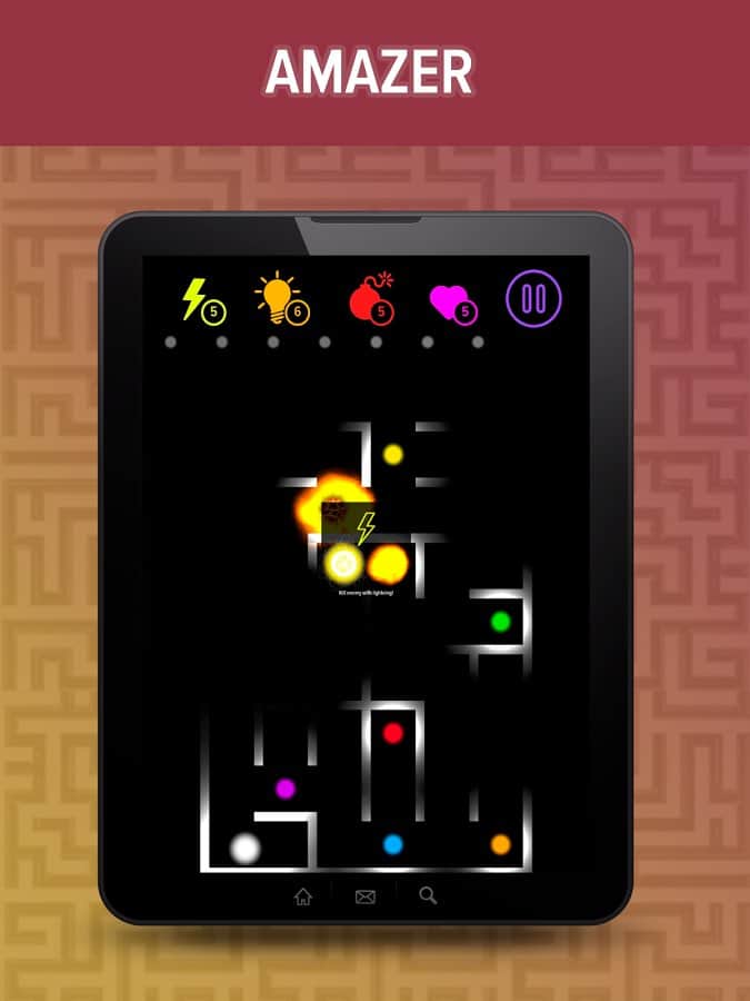 Amazer - 2d labirent ve maze oyunu – ünlü pac-man oyununa benzer şekilde yapılmış eğlenceli bir android oyunudur. Bu oyundaki asıl göreviniz labirentte topu hareket ettirmek ve yoldaki tüm engelleri aşmaktır. Tüm zorlukları en kısa sürede geçmek için parmak hızınızı ve mükemmel tepki sürenizi geliştirin. Labirentte ilerlemek için ek hayatlar ve bonuslar aramanız gerekiyor. Önünüzde 200'den fazla benzersiz seviye, birkaç oyun modu ve eşsiz bir oyun deneyimi sizi bekliyor. Bu oyunu istediğiniz her an oynayın ve en iyi sonuçlar için arkadaşlarınızla yarışın.