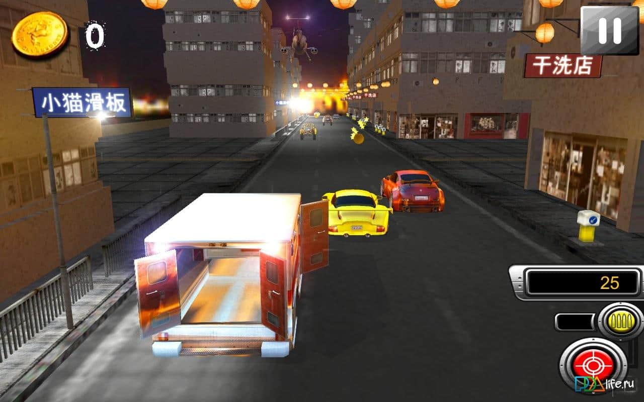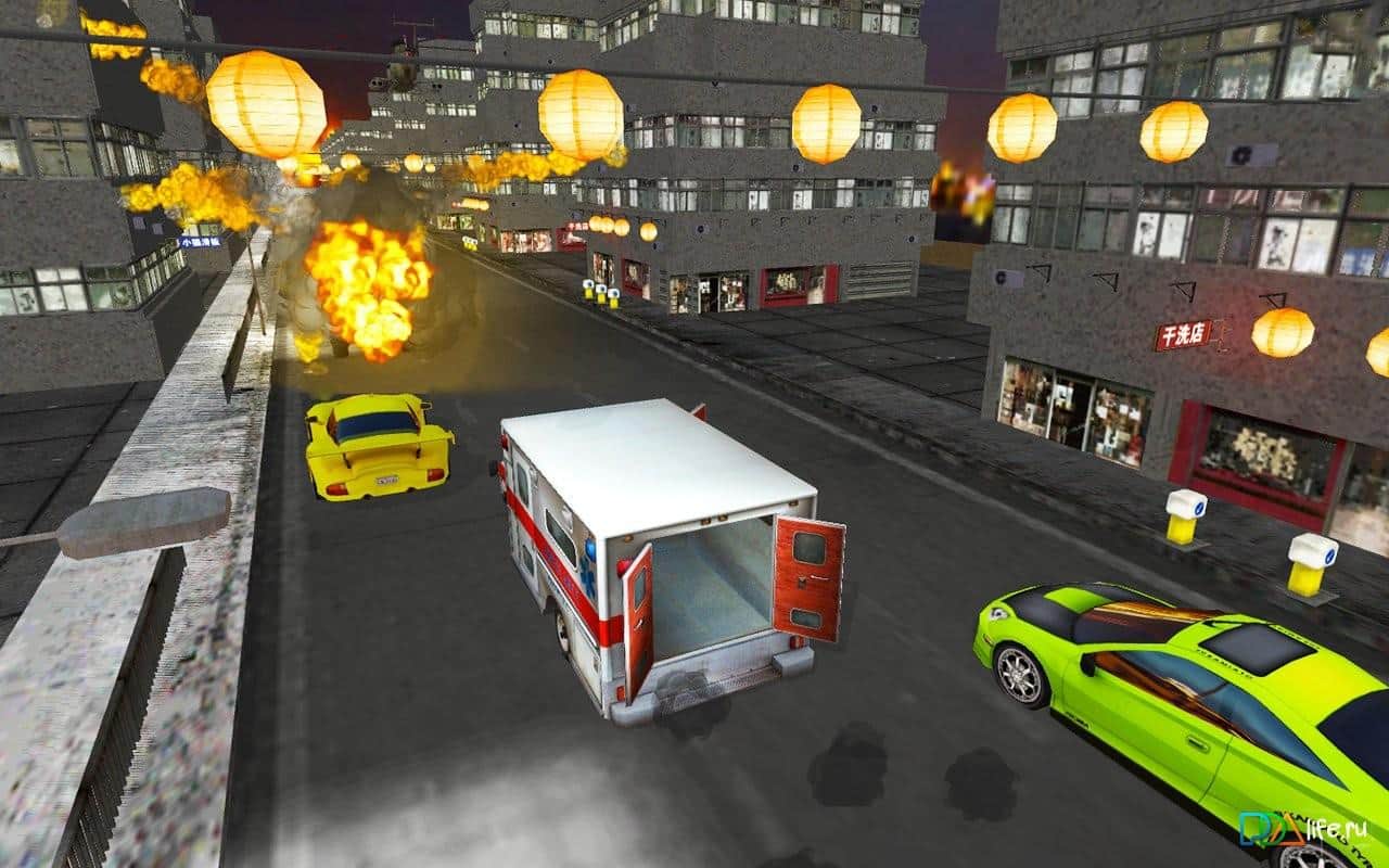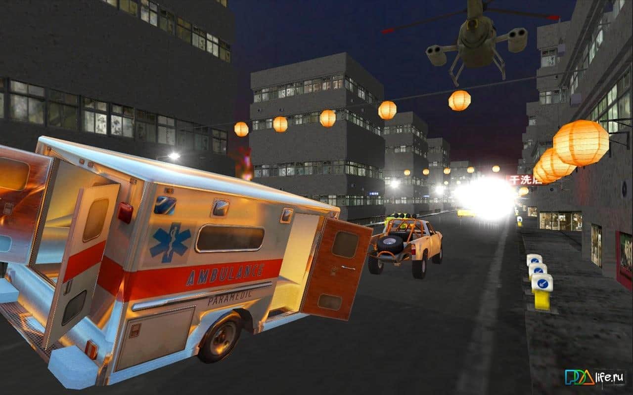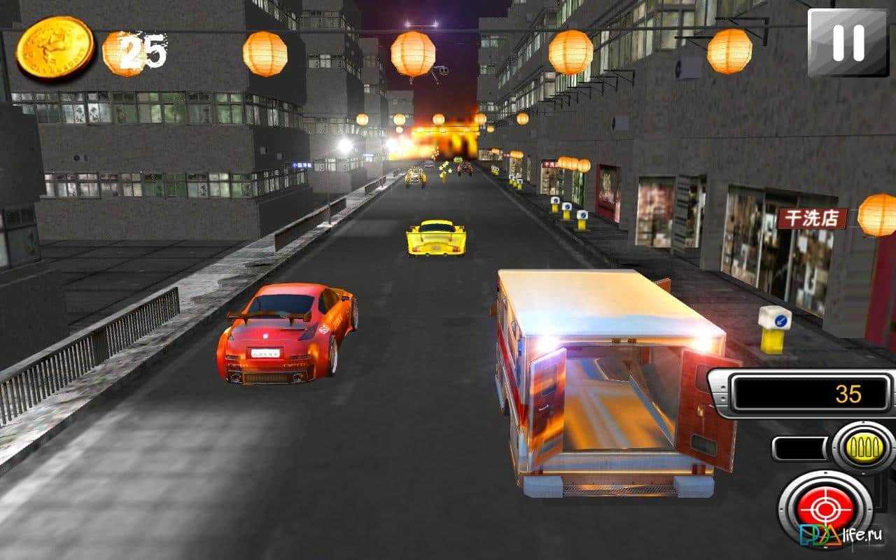 Ambulans Sokak Silah Yarışçısı - Android için ilginç yarışlar, hastaneden ambulansla kaçmaya çalışacağınız oyun. Tamamen sağlıklısınız, ancak bir nedenle taburcu edilmek istemiyorsunuz. Acil yardım araçlarını çalmaya karar veriyorsunuz. Yoğun şehirde hızla ilerleyeceksiniz, peşinize düşecekler. Durum gerektirirse, silah kullanın.