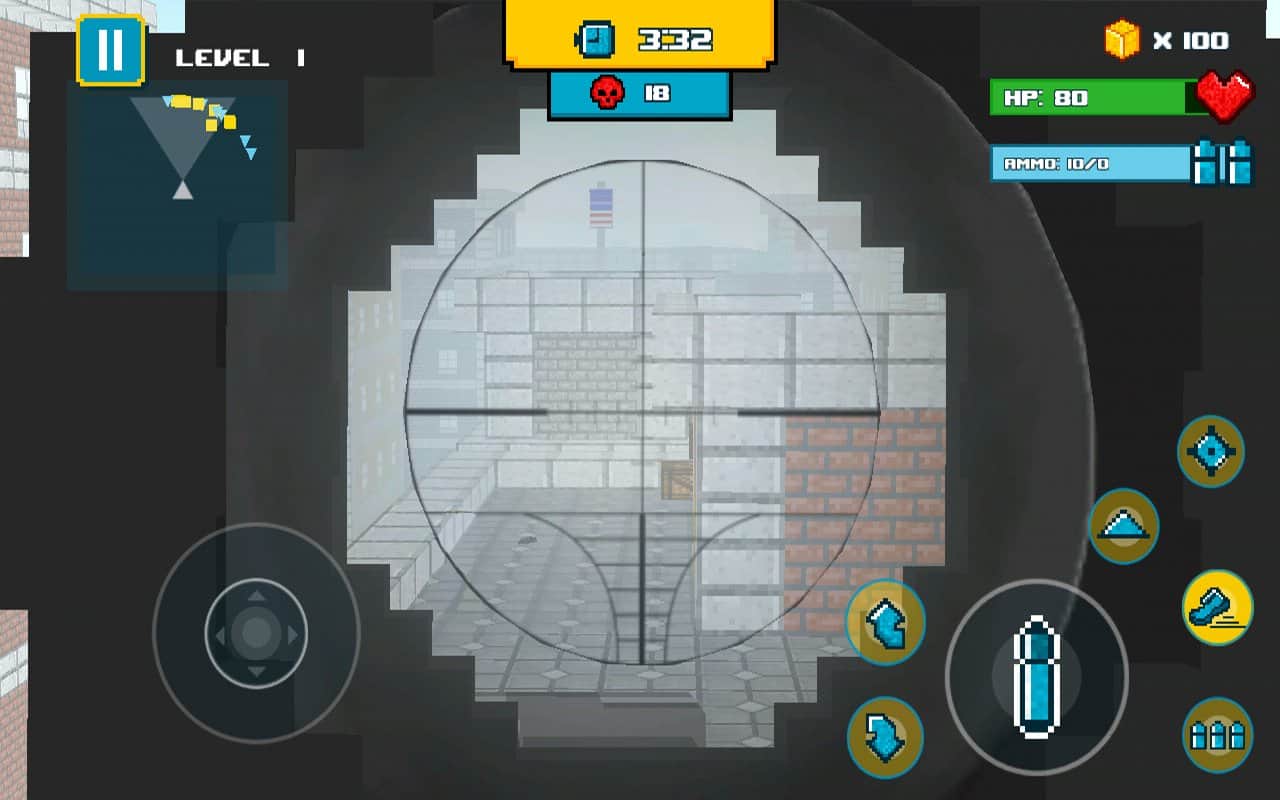 Amerikan Blok Keskin Nişancı Hayatta Kalma – Android'de bir aksiyon oyunu, burada savaş alanında hareket edecek ve sayısız düşmanı yok edeceksiniz. Güçlü bir silah alın ve sizi çeşitli haritalarda bekleyen birçok düşmanla savaşın. Araziyi anlamak ve düşmanları takip etmek için mini haritaları kullanın. Sığınaklar arayın ve düşmanın geri ateşinden korunmak için binaların arkasına saklanın ve karşılık olarak nişan alarak ateş edin. Haritalarda dağınık halde bulunan sağlık paketlerini toplayarak düşmanlara karşı küçük bir avantaj elde edin. Oyun, blok grafiklerle, geniş bir silah yelpazesiyle ve çeşitli mekanlarla oyuncuları memnun edecek.