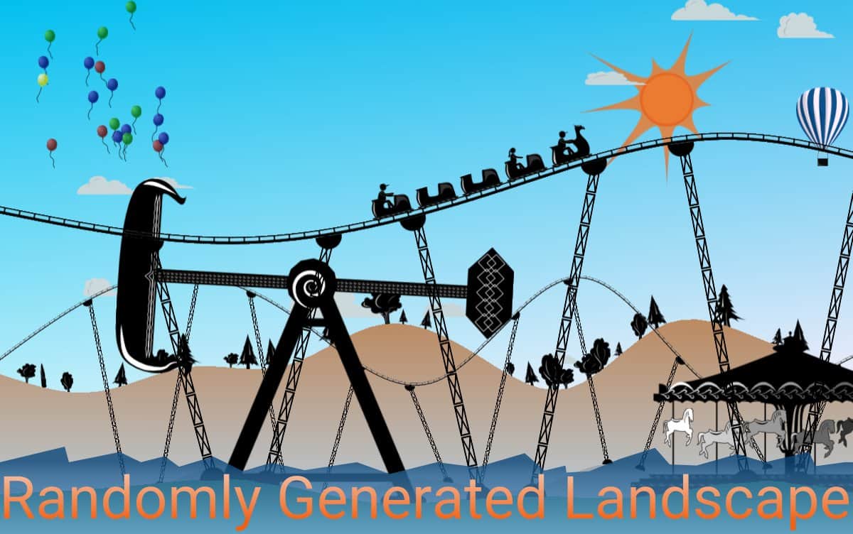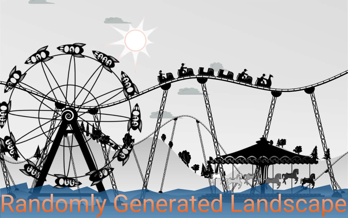 - Eğlence parkı rastgele oluşturulur (her seferinde yeni bir manzara)