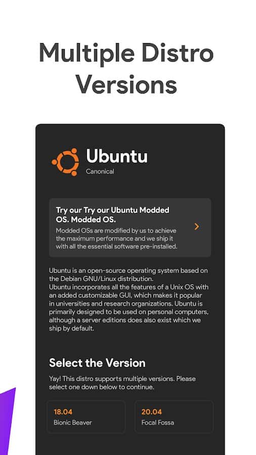 Web sayfalarını inceleyin veya gerçek bilgisayarlar gibi kodlayın! Şu anda uygulama birçok işletim sistemini (Alpine, Void, Ubuntu, Debian, Fedora, Manjaro, Arch, Kali), masaüstü ortamlarını (LXQT, LXDE, XFCE) ve pencere yöneticilerini (Openbox, Awesome, I3) destekliyor. Andronix'i sınırsız süre boyunca kullanabilirsiniz, ayrıca gelecekteki işler için yüklemeniz gereken tüm veriler için büyük miktarda bellek harcamadan. En gerekli şeyleri yükleyin ve kullanın!