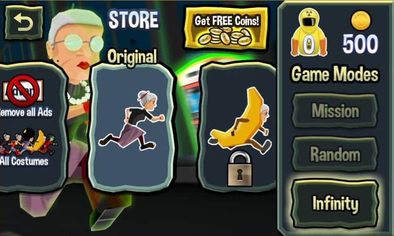 Kızgın Büyükanne Radyoaktif Koşu - sinirli bir büyükanneye dair yaşam ve maceralar üzerine bir başka oyun. Bu sefer, ilginç bir şekilde emeklilikten sıkılan büyükanne, radyoaktif şehirden kaçmak zorunda kalacak, yoksa zehirli ışınlar onu sonsuza dek esir alacak. Yol boyunca, hedefe ulaşmasını engelleyen birçok şanssız insanla karşılaşacak ve ayrıca cansız engellerle de mücadele edecek. Her zamanki gibi, neşeli büyükanne hedefine ulaşmak için hiçbir şeyden geri durmayacak. Kötü haberlerin yanı sıra, iyi haberler de var - yol boyunca yerde para birimleri var, büyükanne bunları en iyi şekilde kullanabiliyor, ayrıca onun zorlu koşusunda yardımcı olacak bonuslar da mevcut. Farklı modları sevenler için üç tane mevcut:
