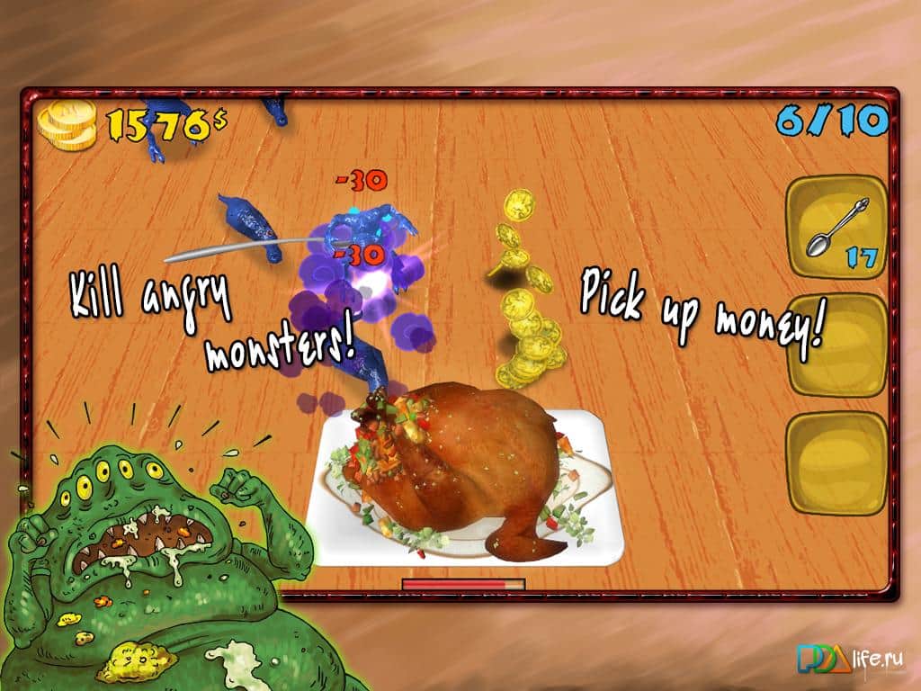 Öfkeli Canavarlar 3D - mutfak canavarlarını yok etmeniz gereken eğlenceli bir Android oyunu. Onlar, tüm yiyeceklerinizi yemeye çalışıyor ve onları yok etmeniz gerekiyor. Bunun için her yol mubahtır; kaşık, çatal, çekiç ve parmak dahil her şey kullanılabilir. Güzel grafikler, sürükleyici oyun deneyimi ve çeşitli canavarlardan oluşan kalabalıklar sizi sıkılmaktan alıkoyacak. Tüm canavarları yok edin ve sevdiğiniz yemekleri geri kazanın.